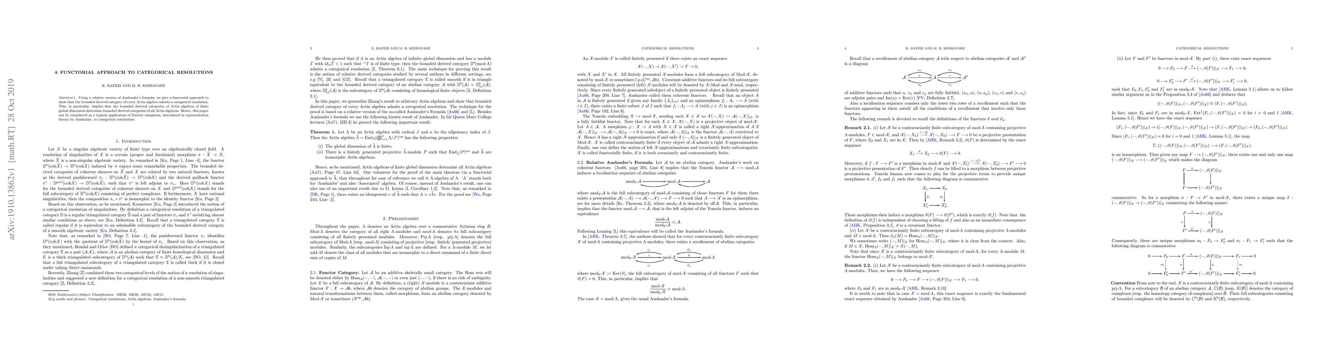 This paper presents a functorial method, leveraging a relative version of Auslander's formula, to demonstrate that the bounded derived category of any Artin algebra possesses a categorical resolution. The result highlights the significance of Artin algebras of finite global dimension in determining the derived categories of all Artin algebras.