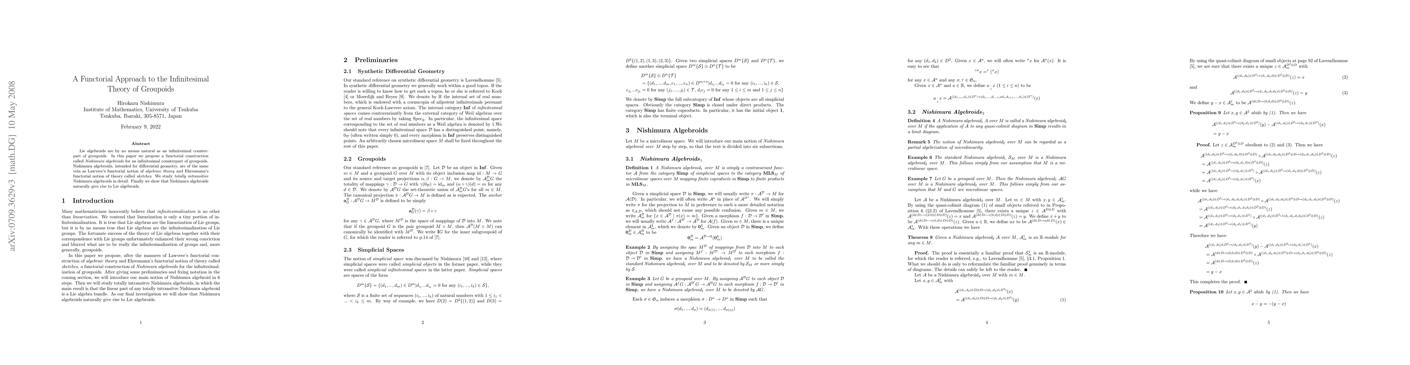 Lie algebroids are by no means natural as an infinitesimal counterpart of groupoids. In this paper we propose a functorial construction called Nishimura algebroids for an infinitesimal counterpart of groupoids. Nishimura algebroids, intended for differential geometry, are of the same vein as Lawvere's functorial notion of algebraic theory and Ehresmann's functorial notion of theory called sketches. We study totally intransitive Nishimura algebroids in detail. Finally we show that Nishimura algebroids naturally give rise to Lie algebroids.