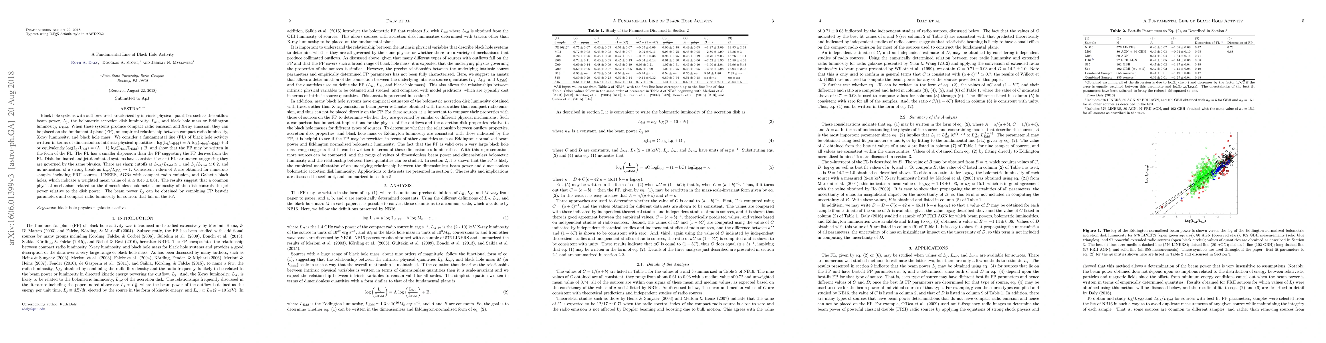 Black hole systems with outflows are characterized by intrinsic physical quantities such as the outflow beam power, $L_j$, the bolometric accretion disk luminosity, $L_{bol}$, and black hole mass or Eddington luminosity, $L_{Edd}$. When these systems produce compact radio emission and X-ray emission, they can be placed on the fundamental plane (FP), an empirical relationship between compact radio luminosity, X-ray luminosity, and black hole mass. We consider a fundamental line (FL) of black hole activity written in terms of dimensionless intrinsic physical quantities: $\rm{log} (L_j/L_{Edd}) = A ~\rm{log}(L_{bol}/L_{Edd}) +B$ or equivalently $\rm{log} (L_j/L_{bol}) = (A-1) ~\rm{log}(L_{bol}/L_{Edd}) +B$, and show that the FP may be written in the form of the FL. The FL has a smaller dispersion than the FP suggesting the FP derives from the FL. Disk-dominated and jet-dominated systems have consistent best fit FL parameters suggesting they are governed by the same physics. There are sharp cutoffs at $L_{bol}/L_{Edd} \simeq 1$ and $L_j/L_{Edd} \simeq 0.2$, and no indication of a strong break as $L_{bol}/L_{Edd} \rightarrow 1$. Consistent values of $A$ are obtained for numerous samples including FRII sources, LINERS, AGNs with compact radio emission, and Galactic black holes, which indicate a weighted mean value of $A \simeq 0.45 \pm 0.01$. The results suggest that a common physical mechanism related to the dimensionless bolometric luminosity of the disk controls the jet power relative to the disk power. The beam power $L_j$ can be obtained by combining FP best-fit parameters and compact radio luminosity for sources that fall on the FP.