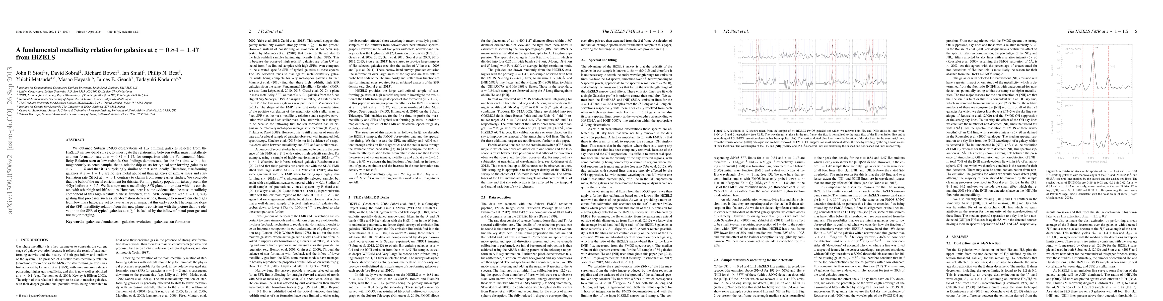 This study uses Subaru FMOS observations to investigate the metallicity relation in star-forming galaxies at redshifts z = 0.84 - 1.47, revealing a relationship similar to the Fundamental Metallicity Relation observed locally. The findings suggest that galaxies at z = 1 - 1.5 have comparable metal abundances to those at z = 0.1, indicating significant metal enrichment before z = 1.5.