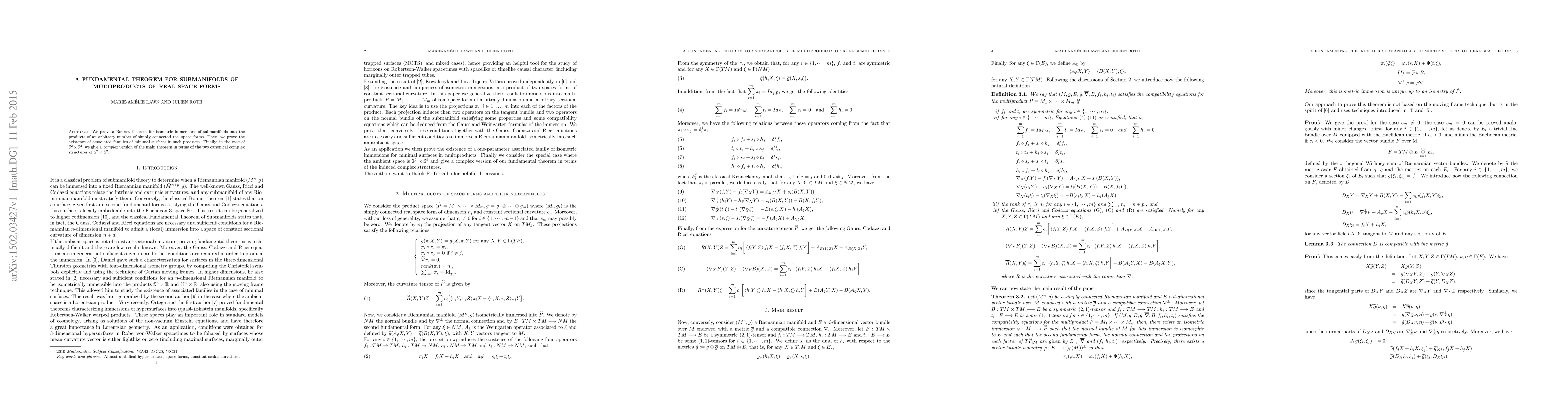 We prove a Bonnet theorem for isometric immersions of submanifolds into the products of an arbitrary number of simply connected real space forms. Then, we prove the existence of associated families of minimal surfaces in such products. Finally, in the case of $\mathbb{S}^2\times\mathbb{S}^2$, we give a complex version of the main theorem in terms of the two canonical complex structures of $\mathbb{S}^2\times\mathbb{S}^2$.