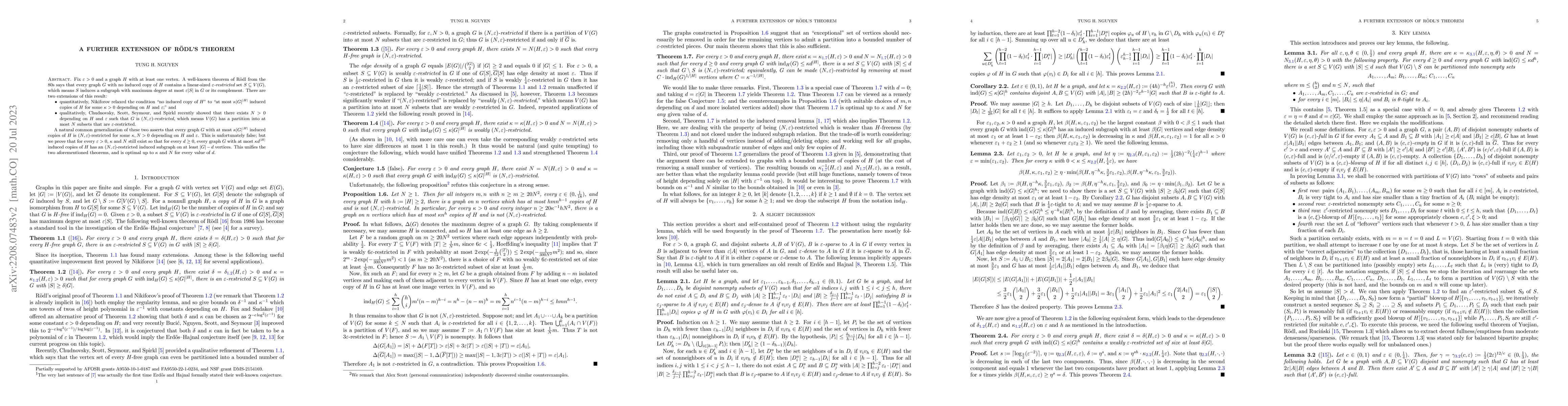 Fix $\varepsilon>0$ and a nonnull graph $H$. A well-known theorem of R\"odl from the 80s says that every graph $G$ with no induced copy of $H$ contains a linear-sized $\varepsilon$-restricted set $S\subseteq V(G)$, which means $S$ induces a subgraph with maximum degree at most $\varepsilon\vert S\vert$ in $G$ or its complement. There are two extensions of this result: $\bullet$ quantitatively, Nikiforov (and later Fox and Sudakov) relaxed the condition "no induced copy of $H$" into "at most $\kappa\vert G\vert^{\vert H\vert}$ induced copies of $H$ for some $\kappa>0$ depending on $H$ and $\varepsilon$"; and $\bullet$ qualitatively, Chudnovsky, Scott, Seymour, and Spirkl recently showed that there exists $N>0$ depending on $H$ and $\varepsilon$ such that $G$ is $(N,\varepsilon)$-restricted, which means $V(G)$ has a partition into at most $N$ subsets that are $\varepsilon$-restricted. A natural common generalization of these two asserts that every graph $G$ with at most $\kappa\vert G\vert^{\vert H\vert}$ induced copies of $H$ is $(N,\varepsilon)$-restricted for some $\kappa,N>0$ depending on $H$ and $\varepsilon$. This is unfortunately false, but we prove that for every $\varepsilon>0$, $\kappa$ and $N$ still exist so that for every $d\ge0$, every graph with at most $\kappa d^{\vert H\vert}$ induced copies of $H$ has an $(N,\varepsilon)$-restricted induced subgraph on at least $\vert G\vert-d$ vertices. This unifies the two aforementioned theorems, and is optimal up to $\kappa$ and $N$ for every value of $d$.