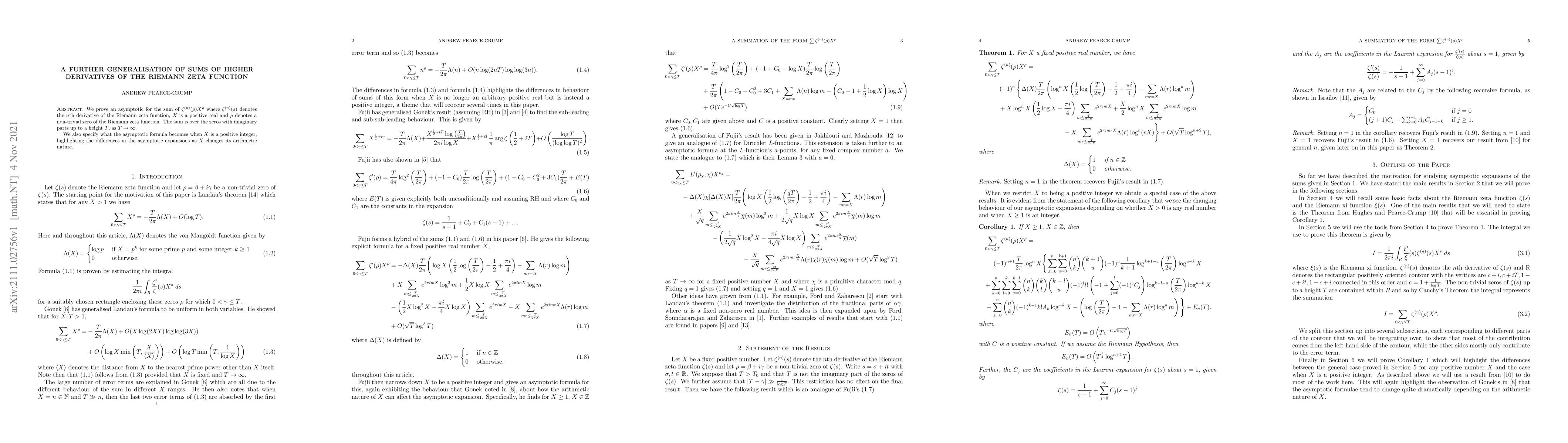 We prove an asymptotic for the sum of $\zeta^{(n)} (\rho)X^{\rho}$ where $\zeta^{(n)} (s)$ denotes the $n$th derivative of the Riemann zeta function, $X$ is a positive real and $\rho$ denotes a non-trivial zero of the Riemann zeta function. The sum is over the zeros with imaginary parts up to a height $T$, as $T \rightarrow \infty$. We also specify what the asymptotic formula becomes when $X$ is a positive integer, highlighting the differences in the asymptotic expansions as $X$ changes its arithmetic nature.