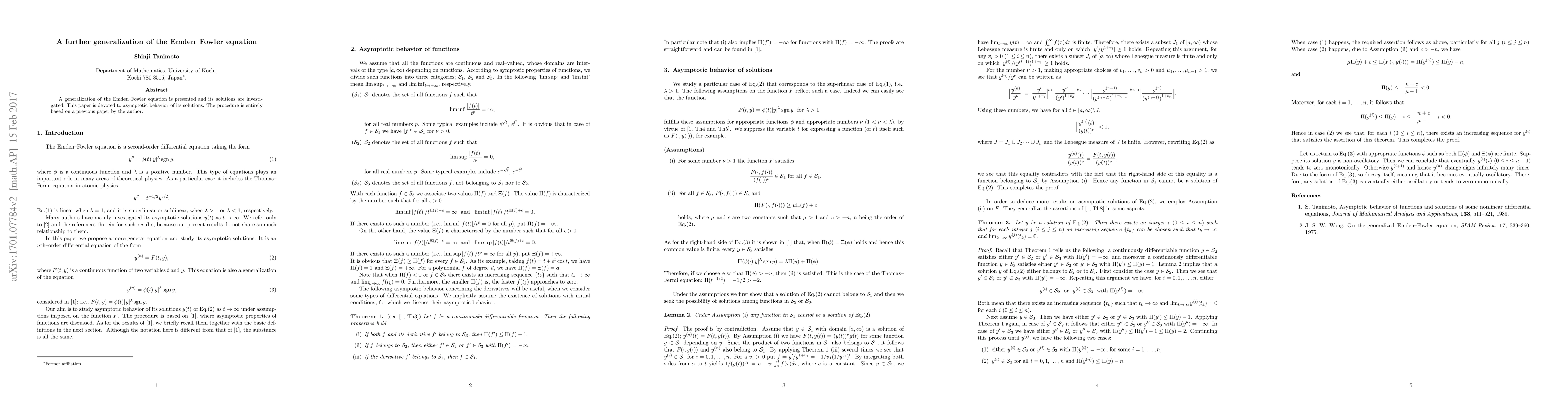 This paper generalizes the Emden-Fowler equation and explores the asymptotic behavior of its solutions, building on the methodology developed in the author's previous work. The focus is on the long-term behavior of the solutions derived from this generalized equation.