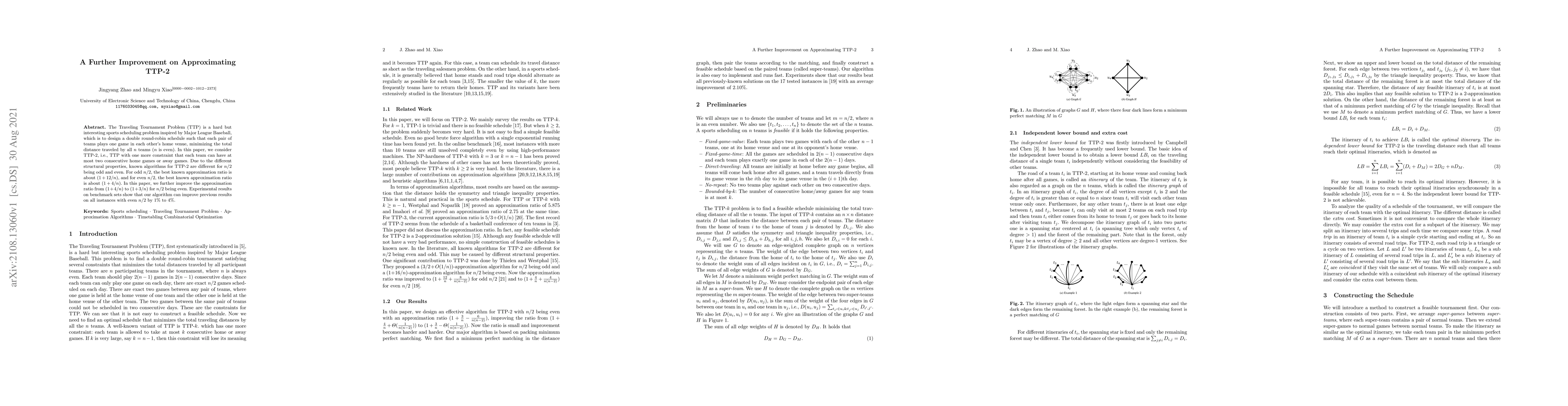 Researchers improved the approximation ratio for the Traveling Tournament Problem-2 (TTP-2), a sports scheduling problem, from $(1+4/n)$ to $(1+3/n) for even $n/2$, resulting in 1 extasciitilde4 extpercnt$ improvement over previous results on benchmark sets.