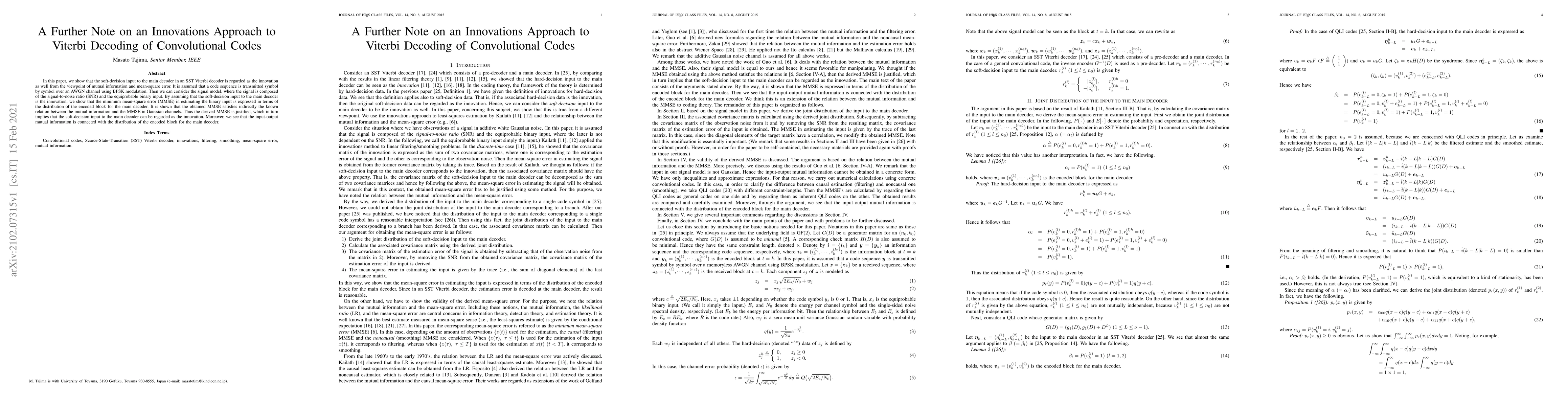 This paper demonstrates that the soft-decision input in an SST Viterbi decoder is an innovation concerning mutual information and mean-square error. It shows that the minimum mean-square error in estimating the binary input is linked to the distribution of the encoded block, thereby justifying the soft-decision input as an innovation.