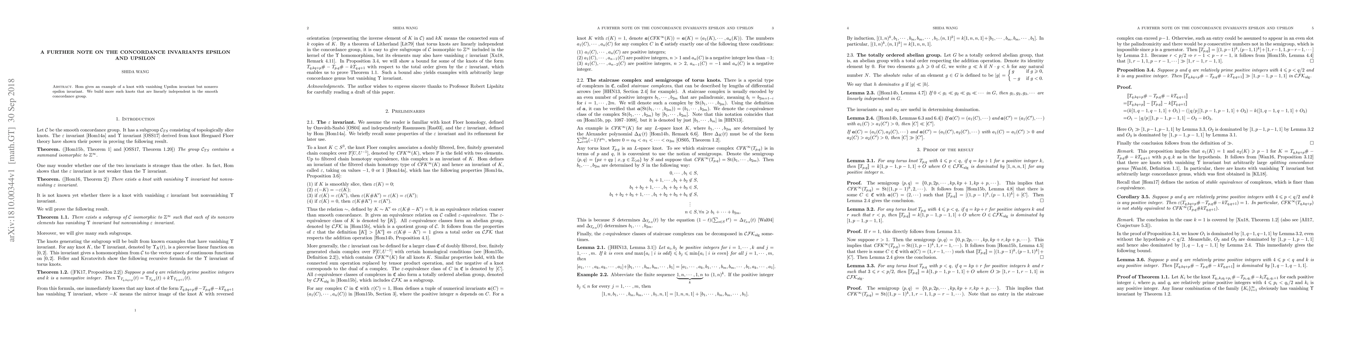 This paper constructs additional knots with a vanishing Upsilon but nonzero epsilon invariant, demonstrating their linear independence in the smooth concordance group, thus expanding on Hom's initial example.