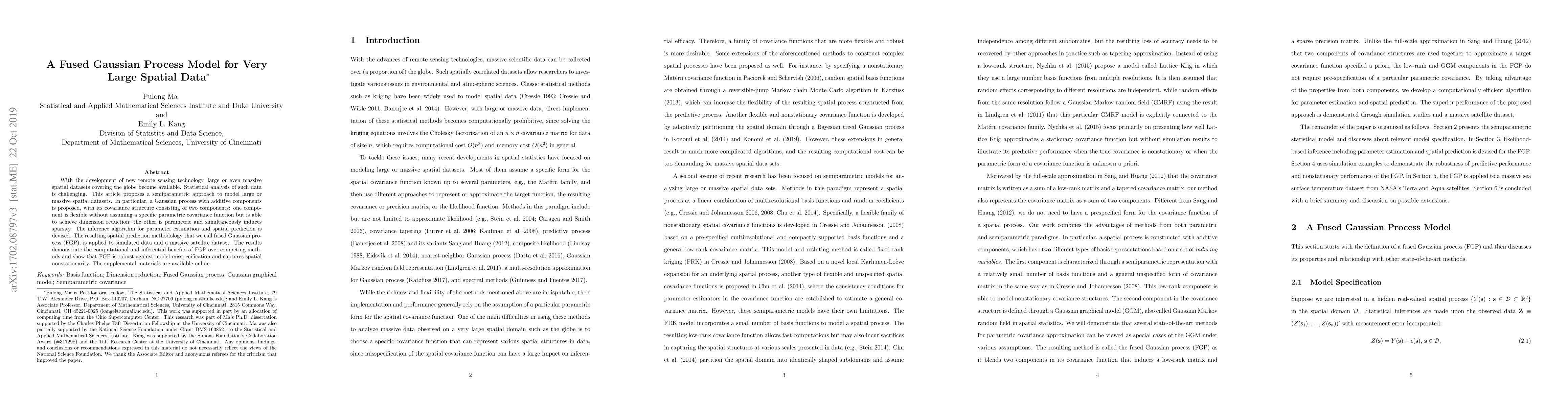 Researchers propose a new statistical model called Fused Gaussian Process to analyze massive spatial datasets, offering benefits in computation and inference compared to existing methods.