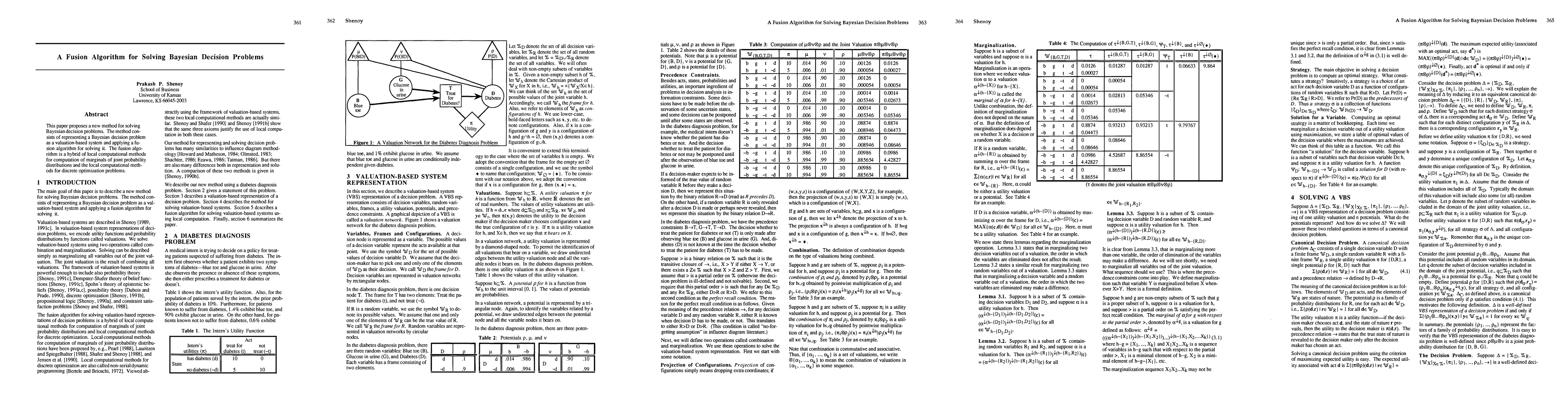 This paper introduces a fusion algorithm that combines local computational methods for marginal computation and discrete optimization to solve Bayesian decision problems by representing them as valuation-based systems. The proposed method aims to enhance the efficiency and accuracy of decision-making in probabilistic contexts.