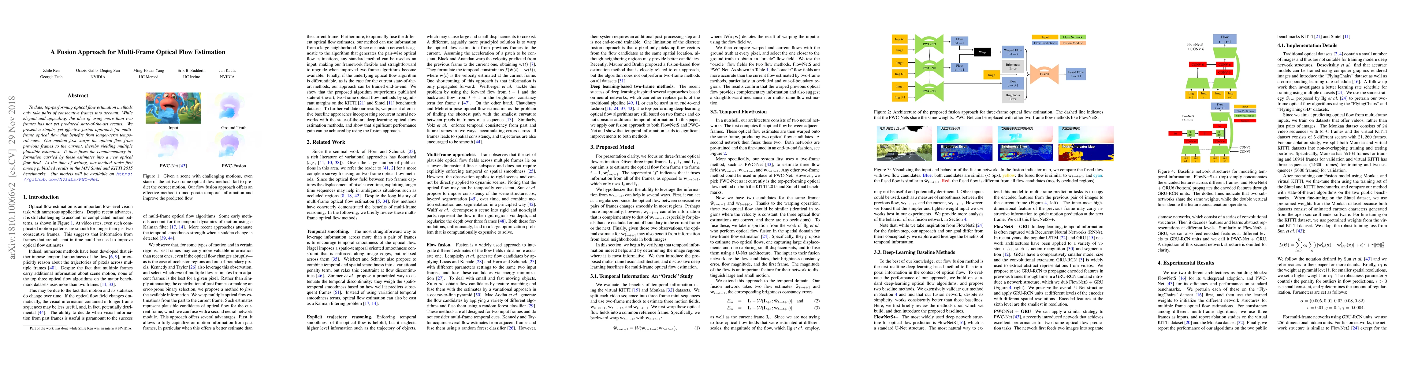 This paper introduces a fusion approach for multi-frame optical flow estimation that leverages longer-term temporal cues by warping previous frame flows to the current frame and fusing them for a more accurate estimate. The proposed method outperforms existing techniques on the MPI Sintel and KITTI 2015 benchmarks.