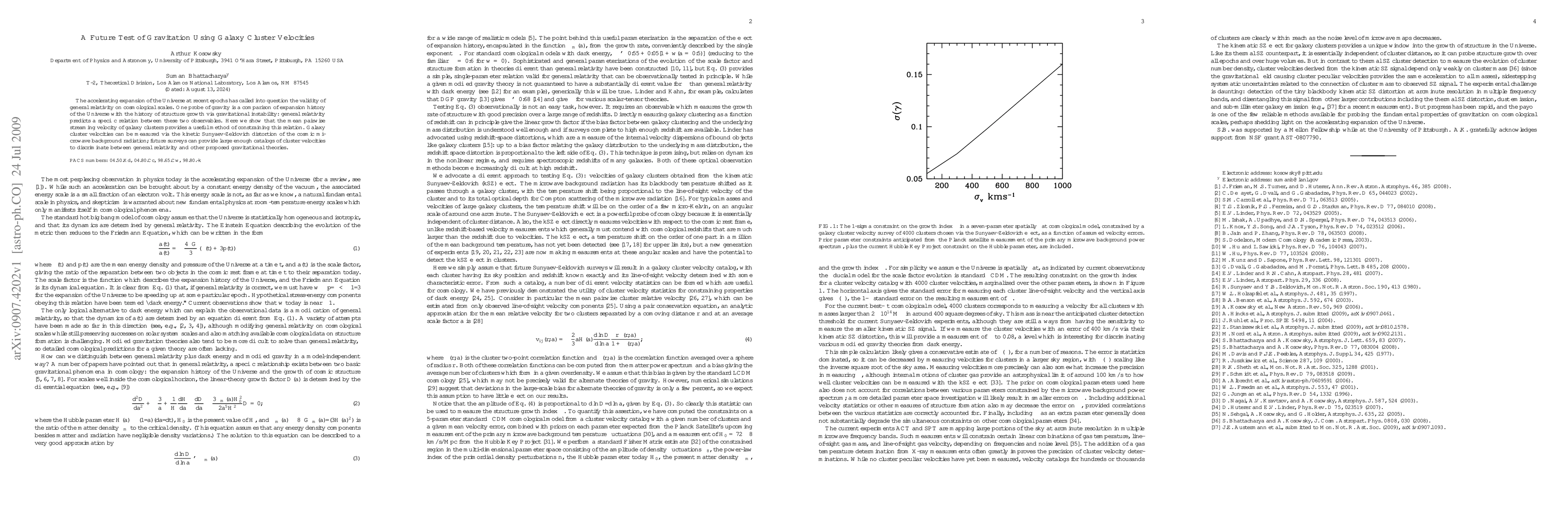 This paper explores using galaxy cluster velocities to test general relativity on cosmological scales, suggesting that future surveys can measure these velocities via the kinetic Sunyaev-Zeldovich effect to distinguish between general relativity and alternative gravitational theories.