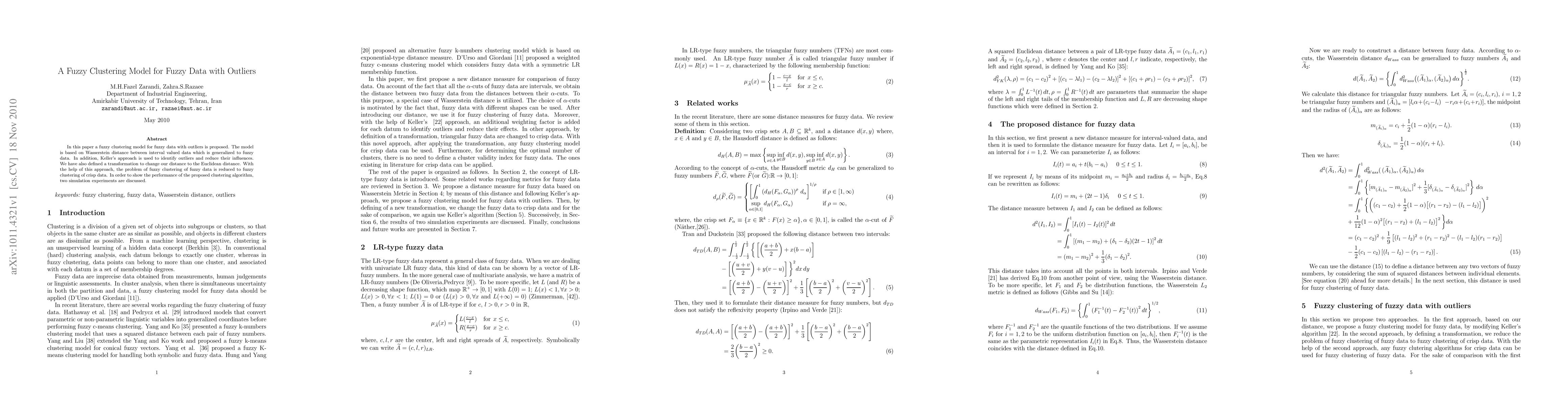 This paper proposes a fuzzy clustering model for fuzzy data, incorporating Wasserstein distance for clustering and Keller's approach to identify and mitigate outliers. The method transforms fuzzy data into crisp form for easier clustering, and simulations demonstrate its effectiveness.
