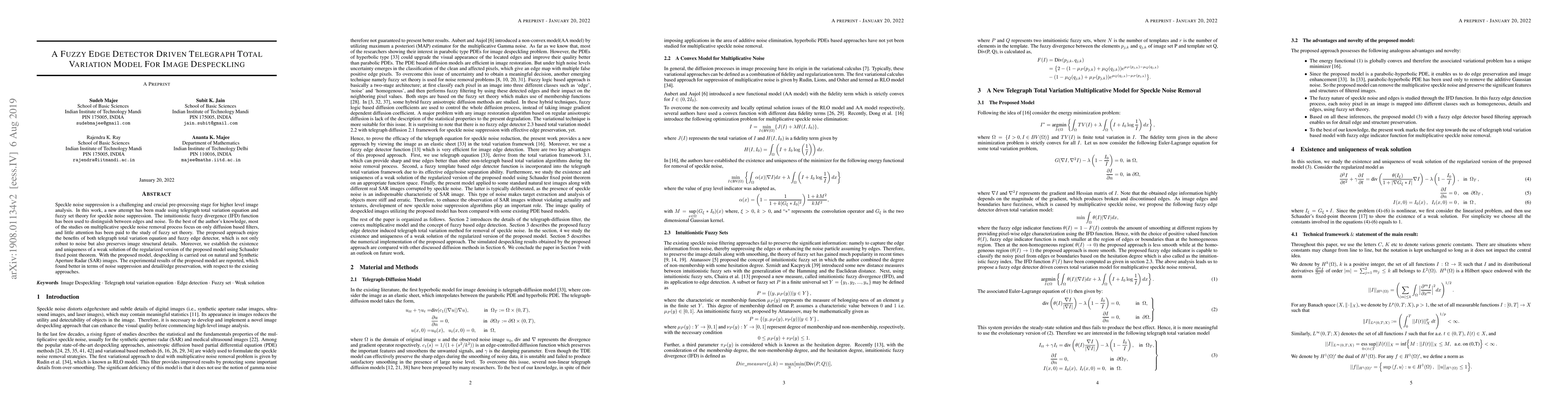 A new approach using telegraph total variation equation and fuzzy set theory is proposed for speckle noise suppression in images, achieving better results in noise reduction and detail preservation compared to existing methods.