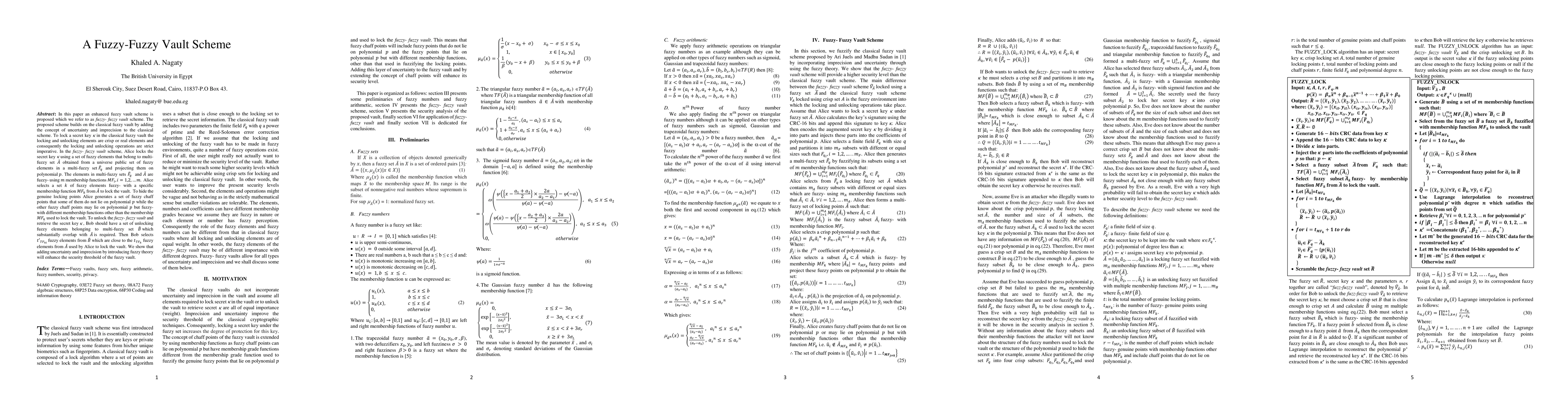 This paper proposes a fuzzy-fuzzy vault scheme that enhances the classical fuzzy vault by incorporating uncertainty and imprecision through the use of fuzzy elements and membership functions. The scheme allows Alice to lock a secret key using fuzzy elements from a multi-fuzzy set, generating fuzzy chaff points to hide genuine locking points, thereby increasing security.