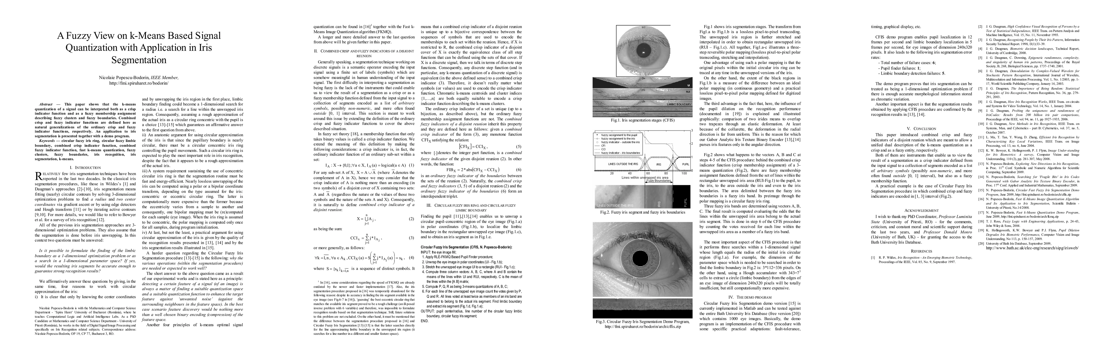 This paper shows that the k-means quantization of a signal can be interpreted both as a crisp indicator function and as a fuzzy membership assignment describing fuzzy clusters and fuzzy boundaries. Combined crisp and fuzzy indicator functions are defined here as natural generalizations of the ordinary crisp and fuzzy indicator functions, respectively. An application to iris segmentation is presented together with a demo program.