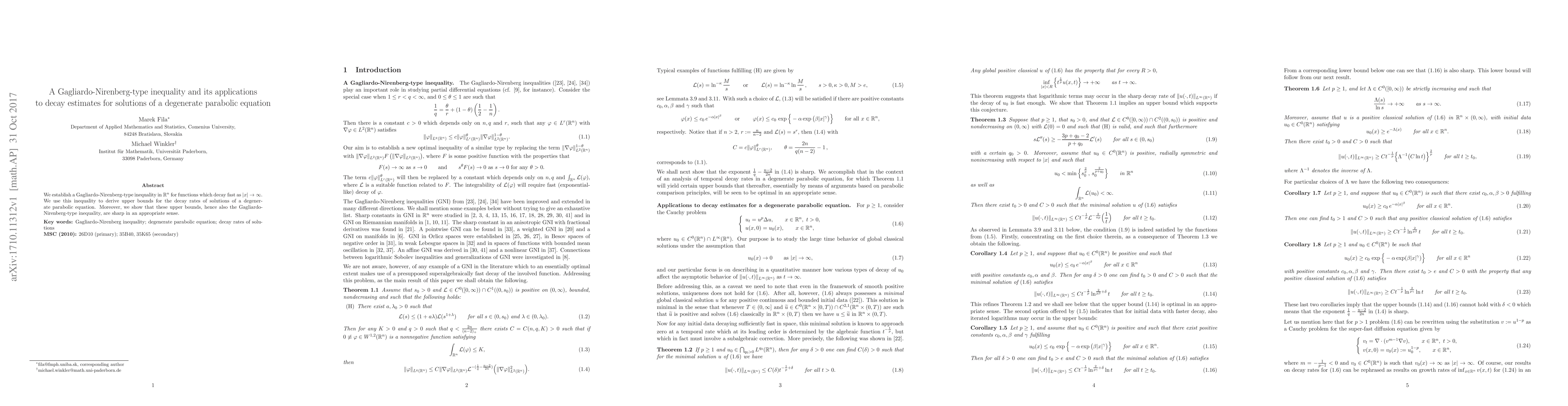 We establish a Gagliardo-Nirenberg-type inequality in $\mathbb{R}^n$ for functions which decay fast as $|x|\to\infty$. We use this inequality to derive upper bounds for the decay rates of solutions of a degenerate parabolic equation. Moreover, we show that these upper bounds, hence also the Gagliardo-Nirenberg-type inequality, are sharp in an appropriate sense.