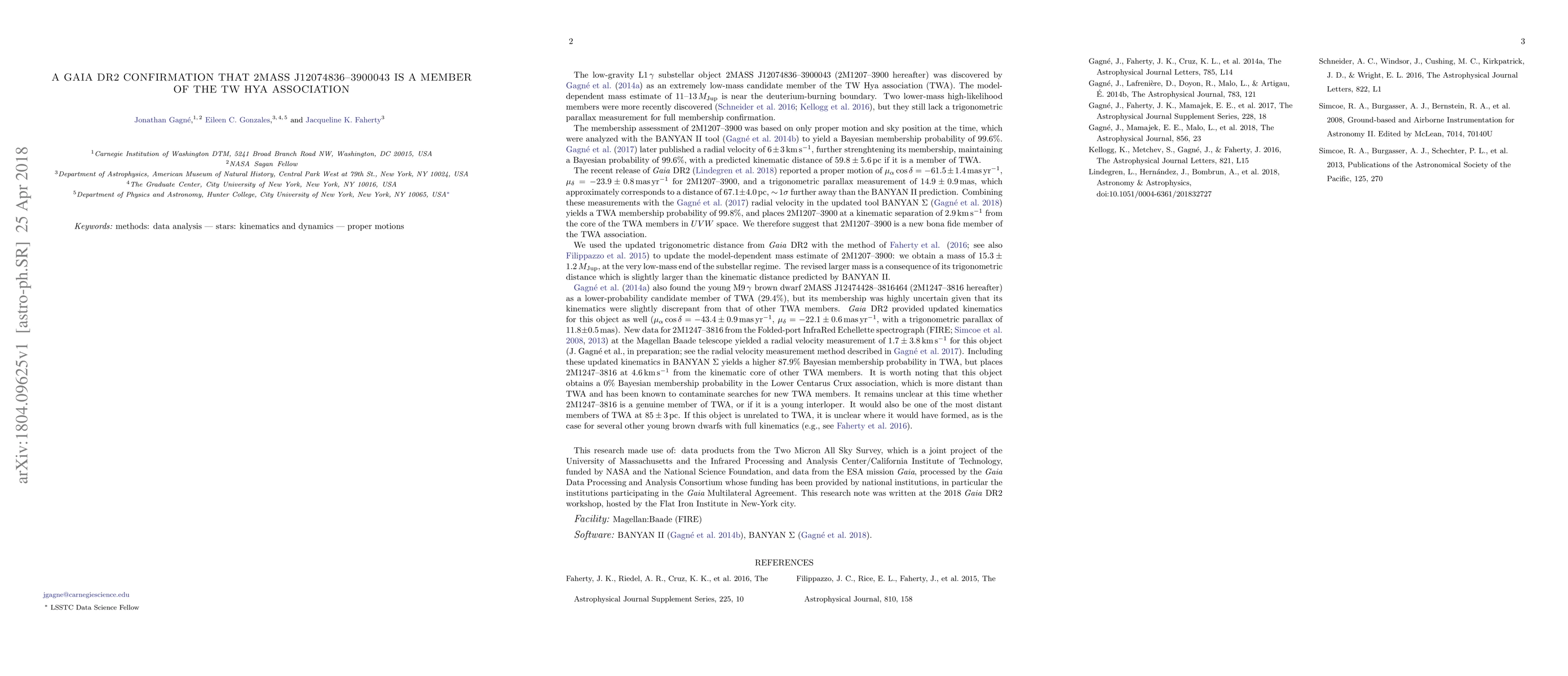 Gaia DR2 data confirms that 2MASS J12074836-3900043 is a bona fide member of the TW Hya association with a mass estimate of ~15 $M_{Jup}$. The membership status of the M9 $\gamma$ candidate 2MASS J12474428--3816464 remains uncertain due to its 4.6 km/s separation in UVW space from TWA members.