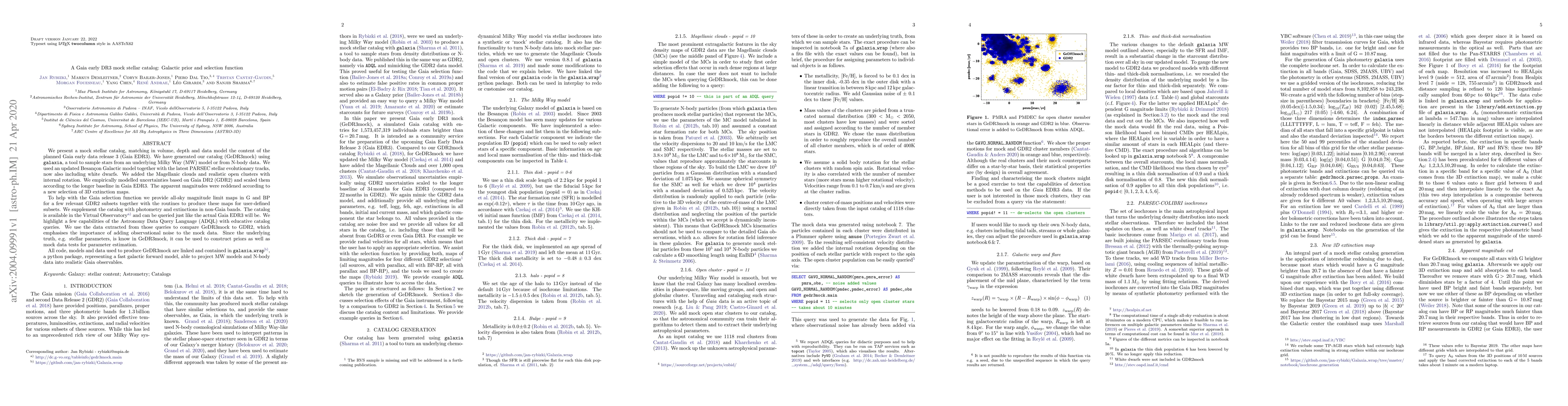 A mock stellar catalog called GeDR3mock was created to match Gaia EDR3 data, featuring updated models of the Milky Way and stars, with implications for parameter estimation and understanding galaxy selection functions.