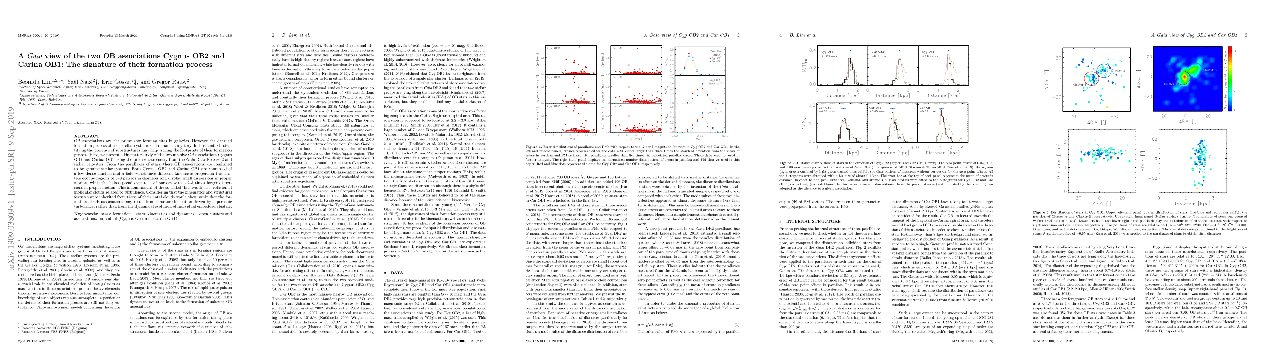 This paper uses Gaia Data Release 2 astrometry to study the kinematic properties of the OB associations Cygnus OB2 and Carina OB1, revealing distinct dense clusters and halos with different proper motion dispersions. The findings suggest that the formation of OB associations may be driven by supersonic turbulence rather than the evolution of individual clusters.