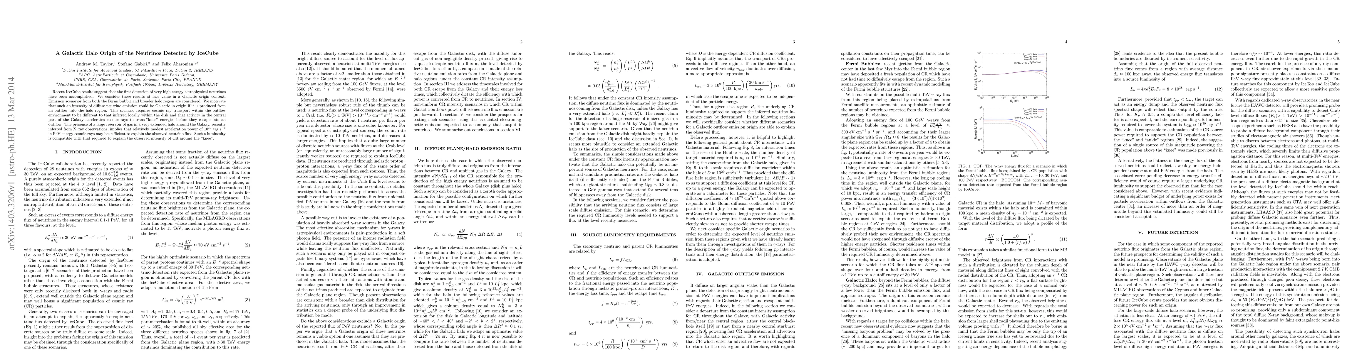 Recent IceCube results suggest that the first detection of very high energy astrophysical neutrinos have been accomplished. We consider these results at face value in a Galactic origin context. Emission scenarios from both the Fermi bubble and broader halo region are considered. We motivate that such an intensity of diffuse neutrino emission could be Galactic in origin if it is produced from an outflow into the halo region. This scenario requires cosmic ray transport within the outflow environment to be different to that inferred locally within the disk and that activity in the central part of the Galaxy accelerates cosmic rays to trans-"knee" energies before they escape into an outflow. The presence of a large reservoir of gas in a very extended halo around the Galaxy, recently inferred from X-ray observations, implies that relatively modest acceleration power of $10^{39}$ erg s$^{-1}$ in PeV energy cosmic rays may be sufficient to explain the observed neutrino flux. Such a luminosity is compatible with that required to explain the observed intensity of cosmic rays around the "knee".