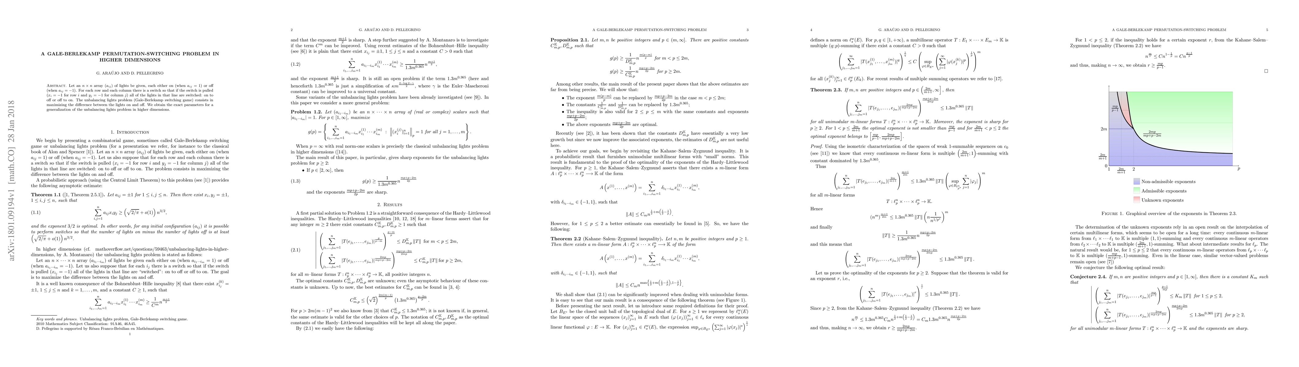 This paper generalizes the Gale-Berlekamp switching game to higher dimensions, where an n x n array of lights can be maximally unbalanced by switching rows or columns, achieving a difference between on and off lights.