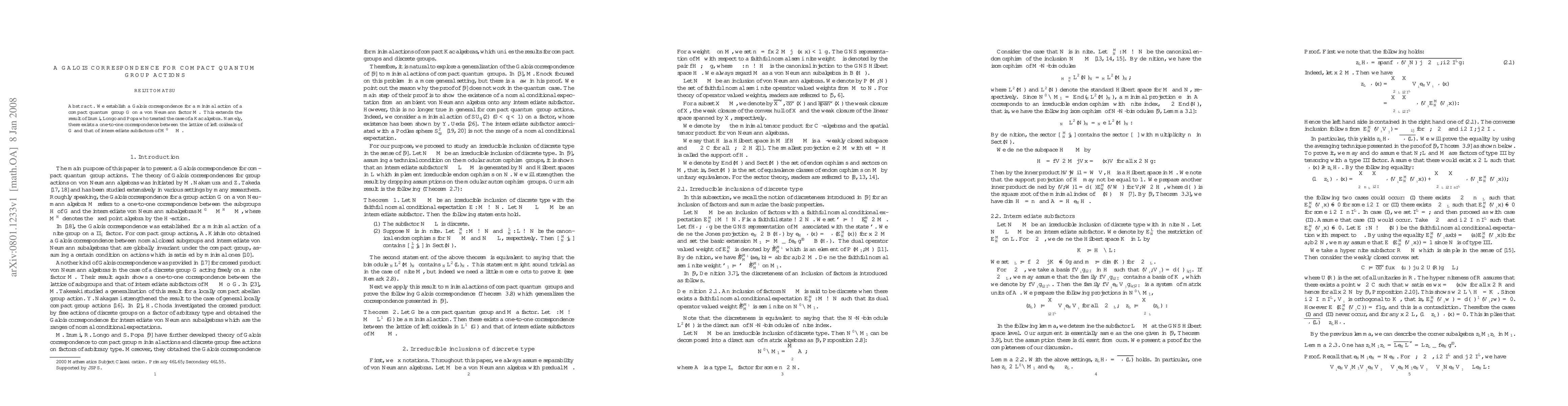 We establish a Galois correspondence for a minimal action of a compact quantum group ${\mathbb G}$ on a von Neumann factor $M$. This extends the result of Izumi, Longo and Popa who treated the case of a Kac algebra. Namely, there exists a one-to-one correspondence between the lattice of left coideals of ${\mathbb G}$ and that of intermediate subfactors of $M^{\mathbb G}\subset M$.