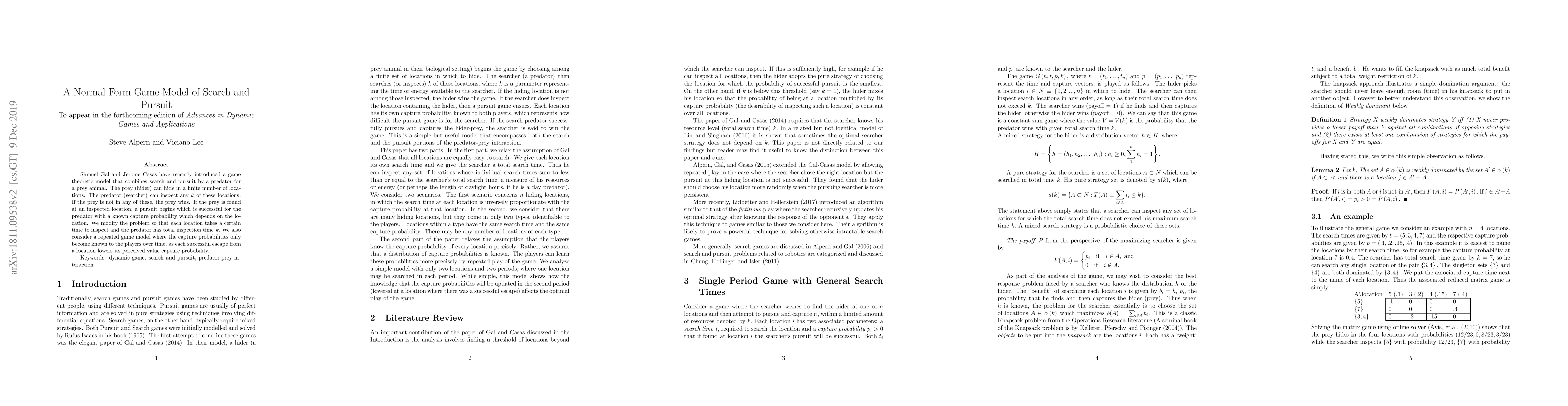 Shmuel Gal and Jerome Casas have recently introduced a game theoretic model that combines search and pursuit by a predator for a prey animal. The prey (hider) can hide in a finite number of locations. The predator (searcher) can inspect any k of these locations. If the prey is not in any of these, the prey wins. If the prey is found at an inspected location, a pursuit begins which is successful for the predator with a known capture probability which depends on the location. We modify the problem so that each location takes a certain time to inspect and the predator has total inspection time k. We also consider a repeated game model where the capture probabilities only become known to the players over time, as each successful escape from a location lowers its perceived value capture probability.