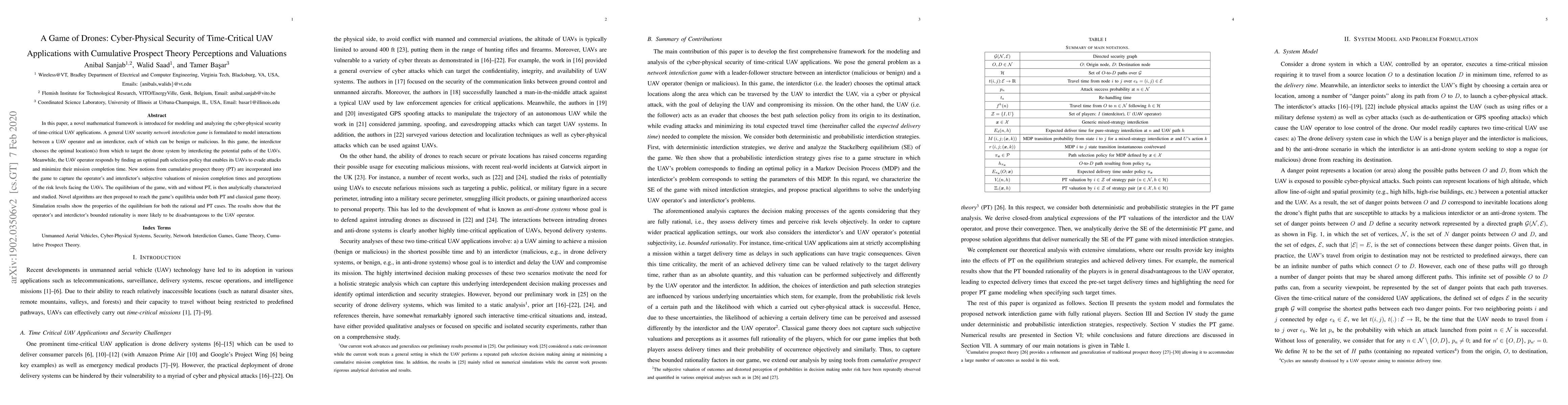In this paper, a novel mathematical framework is introduced for modeling and analyzing the cyber-physical security of time-critical UAV applications. A general UAV security network interdiction game is formulated to model interactions between a UAV operator and an interdictor, each of which can be benign or malicious. In this game, the interdictor chooses the optimal location(s) from which to target the drone system by interdicting the potential paths of the UAVs. Meanwhile, the UAV operator responds by finding an optimal path selection policy that enables its UAVs to evade attacks and minimize their mission completion time. New notions from cumulative prospect theory (PT) are incorporated into the game to capture the operator's and interdictor's subjective valuations of mission completion times and perceptions of the risk levels facing the UAVs. The equilibrium of the game, with and without PT, is then analytically characterized and studied. Novel algorithms are then proposed to reach the game's equilibria under both PT and classical game theory. Simulation results show the properties of the equilibrium for both the rational and PT cases. The results show that the operator's and interdictor's bounded rationality is more likely to be disadvantageous to the UAV operator.