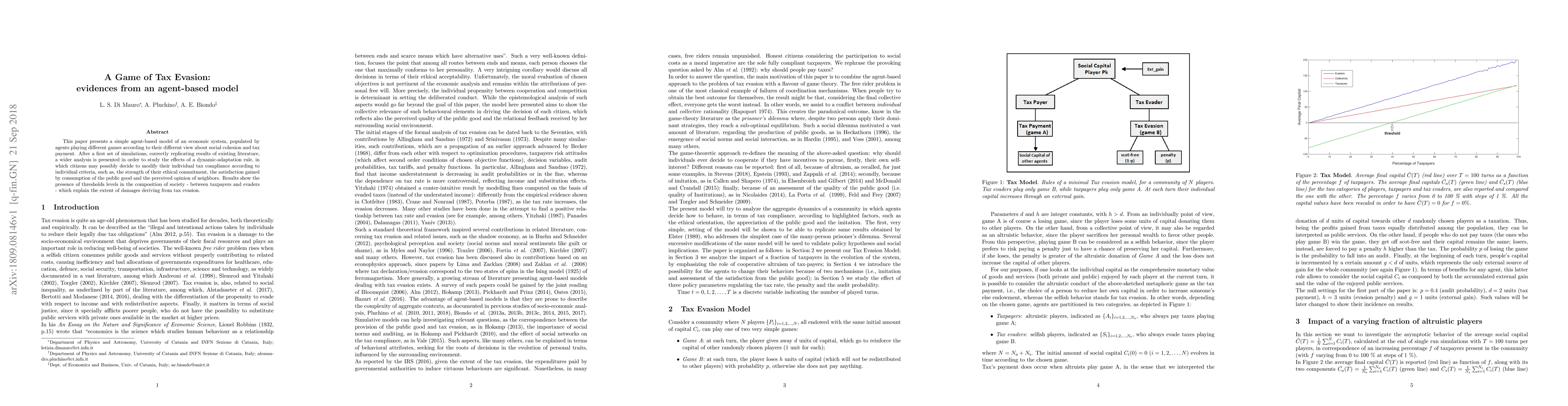 This paper presents a simple agent-based model of an economic system, populated by agents playing different games according to their different view about social cohesion and tax payment. After a first set of simulations, correctly replicating results of existing literature, a wider analysis is presented in order to study the effects of a dynamic-adaptation rule, in which citizens may possibly decide to modify their individual tax compliance according to individual criteria, such as, the strength of their ethical commitment, the satisfaction gained by consumption of the public good and the perceived opinion of neighbors. Results show the presence of thresholds levels in the composition of society - between taxpayers and evaders - which explain the extent of damages deriving from tax evasion.