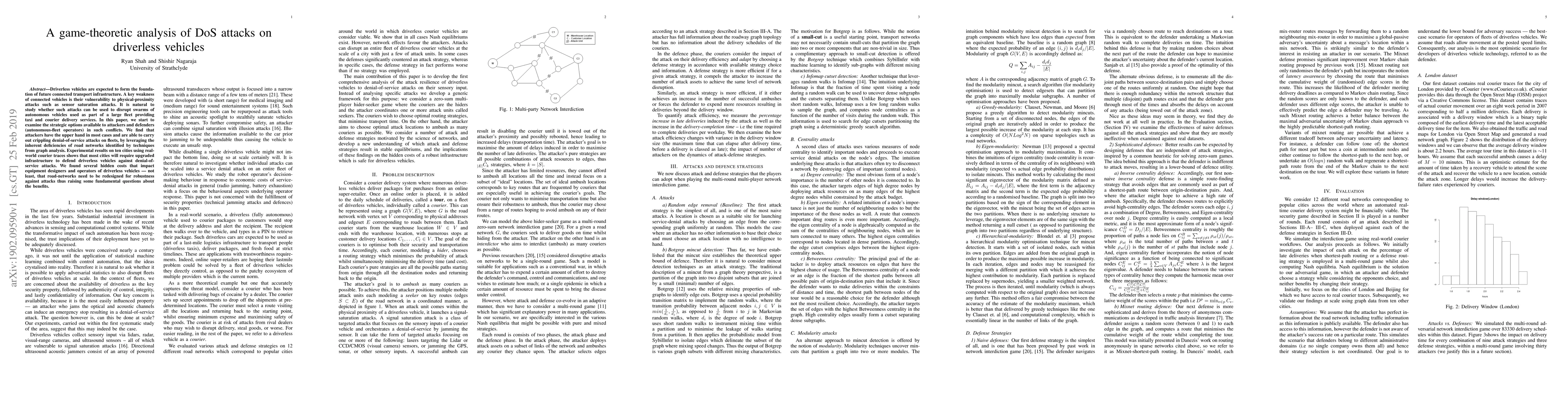 Research finds that driverless vehicles are vulnerable to denial-of-service attacks, with attackers gaining the upper hand in most cases, highlighting a need for upgraded infrastructure and redesigned road networks to protect against such attacks.