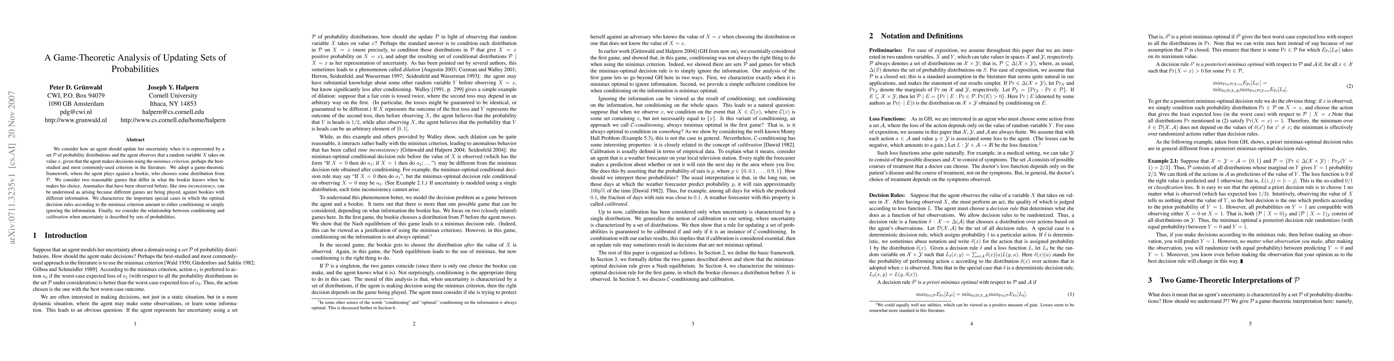This paper analyzes how an agent updates its uncertainty about a random variable when given a set of probability distributions and observes the variable's value using the minimax criterion. It finds that optimal decision rules can either condition on new information or ignore it in certain special cases.