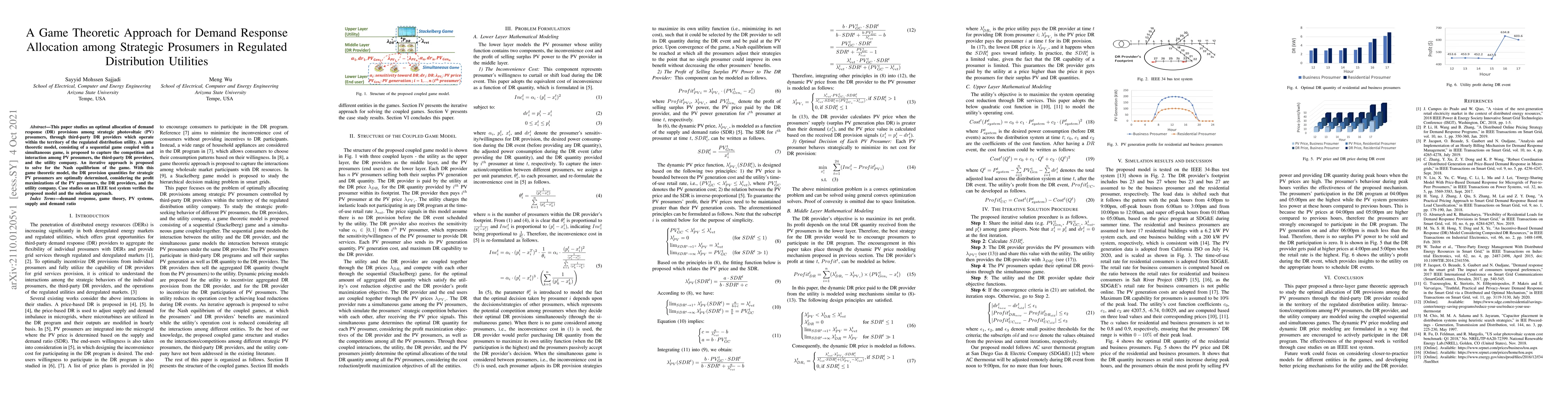 This paper proposes a game theoretic model to optimally allocate demand response among strategic photovoltaic prosumers via third-party providers within a regulated utility framework. An iterative method is used to find the Nash equilibrium, ensuring profit maximization for all parties involved, as verified by case studies on an IEEE test system.