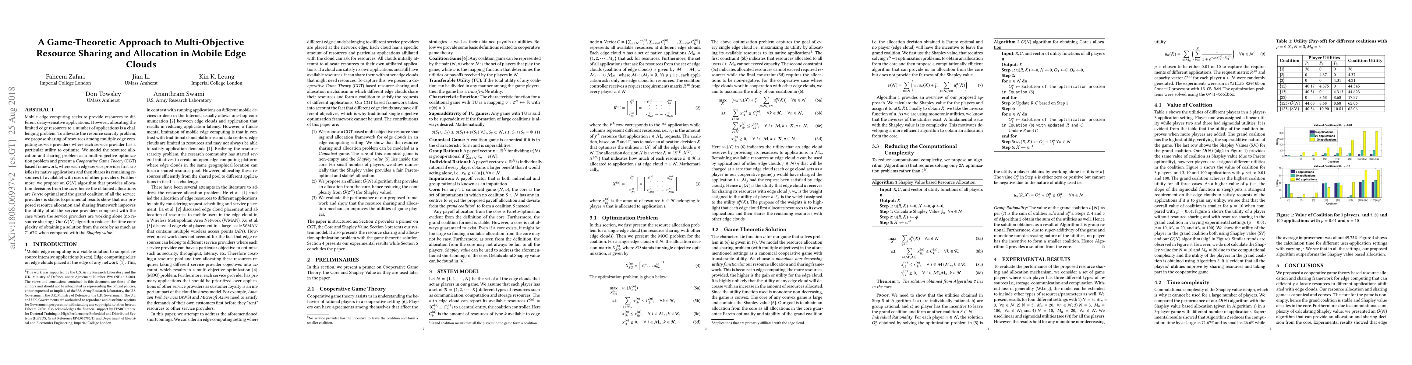 This paper proposes a Cooperative Game Theory (CGT) framework for multi-objective resource sharing and allocation among mobile edge computing service providers. The authors introduce an $\mathcal{O}(N)$ algorithm that achieves Pareto optimal allocations and reduces time complexity by 71.67% compared to the Shapley value, demonstrating improved utility for all providers.