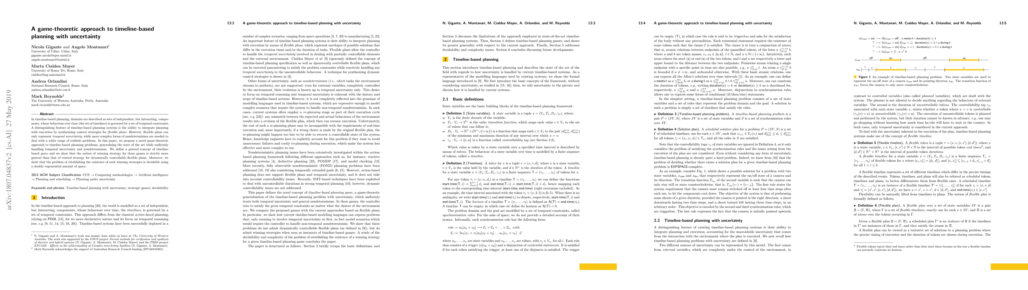 This paper introduces a game-theoretic framework for timeline-based planning under uncertainty, extending traditional flexible plans to handle both temporal uncertainty and nondeterminism. It defines a timeline-based game and proves that finding winning strategies for these games is more comprehensive than existing control strategies, with the problem of such strategies' existence being decidable.