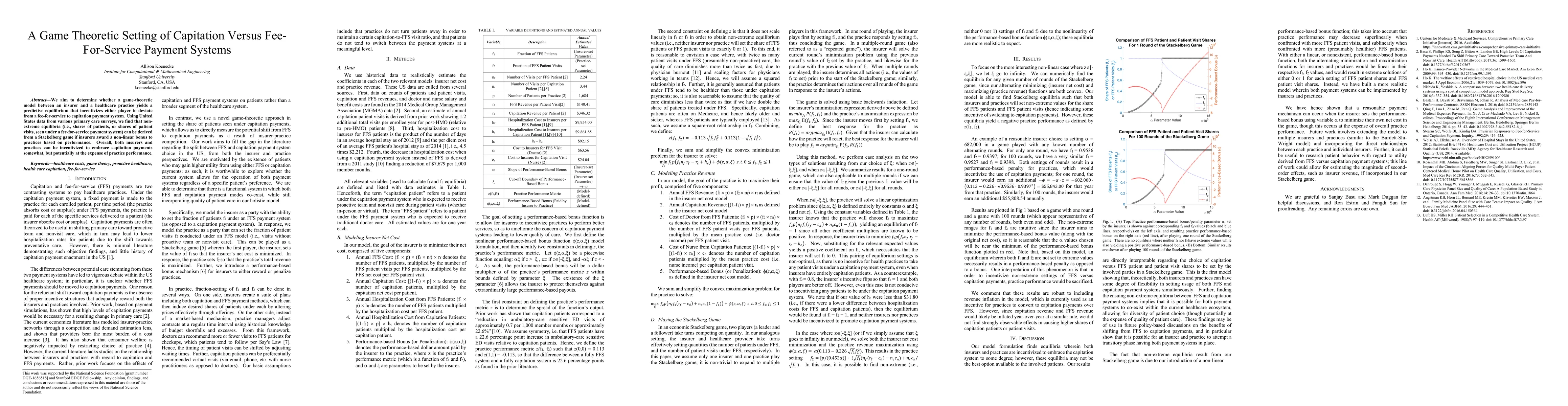 We aim to determine whether a game-theoretic model between an insurer and a healthcare practice yields a predictive equilibrium that incentivizes either player to deviate from a fee-for-service to capitation payment system. Using United States data from various primary care surveys, we find that non-extreme equilibria (i.e., shares of patients, or shares of patient visits, seen under a fee-for-service payment system) can be derived from a Stackelberg game if insurers award a non-linear bonus to practices based on performance. Overall, both insurers and practices can be incentivized to embrace capitation payments somewhat, but potentially at the expense of practice performance.