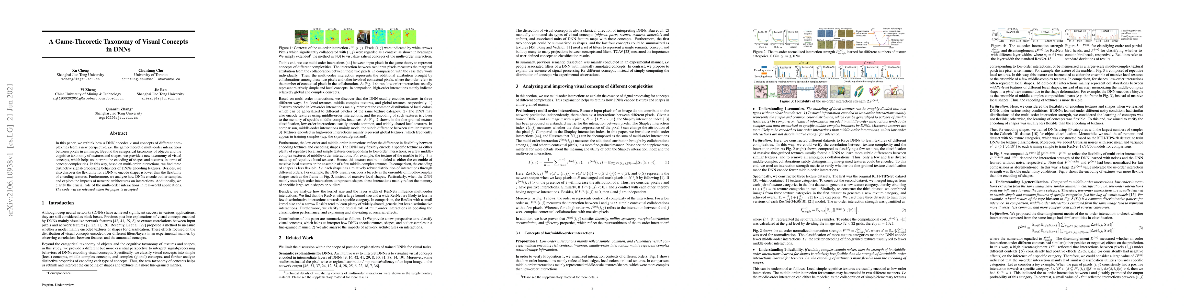 This paper proposes a game-theoretic taxonomy to interpret visual concepts encoded by DNNs in terms of multi-order pixel interactions, revealing three distinct signal-processing behaviors for texture encoding and lower flexibility for shape encoding. It also discusses the role of network architectures and the importance of these interactions in practical applications.
