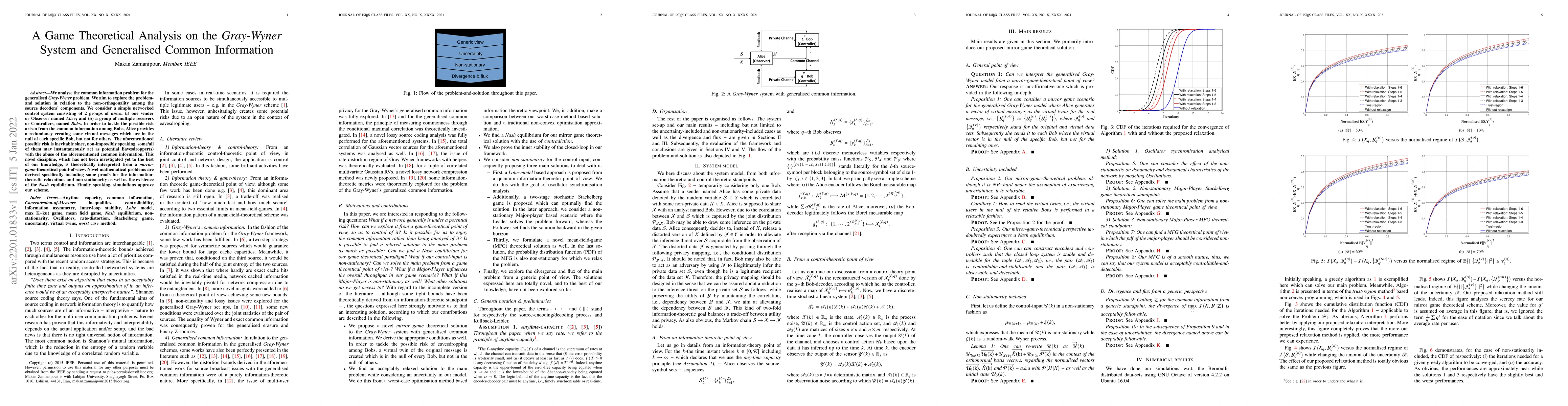 We analyse the common information problem for the generalised Gray-Wyner problem. We aim to explore the problem and solution in relation to the non-orthogonality among the source decoders' components. We consider a simple networked control system consisting of 2 groups of users: (i) one sender or Observer named Alice; and (ii) a group of multiple receivers or Controllers, named Bobs. In order to tackle the possible risk arisen from the common information among Bobs, Alice provides a redundancy creating some virtual messages which are in the null of each specific Bob, but not for others. The aforementioned possible risk is inevitable since, non-impossibly speaking, some/all of them may instantaneously act as potential Eavesdropper(s) with the abuse of the aforementioned common information. This novel discipline, which has not been investigated yet to the best of our knowledge, is theoretically interpreted from a mirror-game-theoretical point-of-view. Novel mathematical problems are derived specifically including some proofs for the information-theoretic relaxations and non-stationarity as well as the existence of the Nash equiblirium. Finally speaking, simulations approve our scheme.