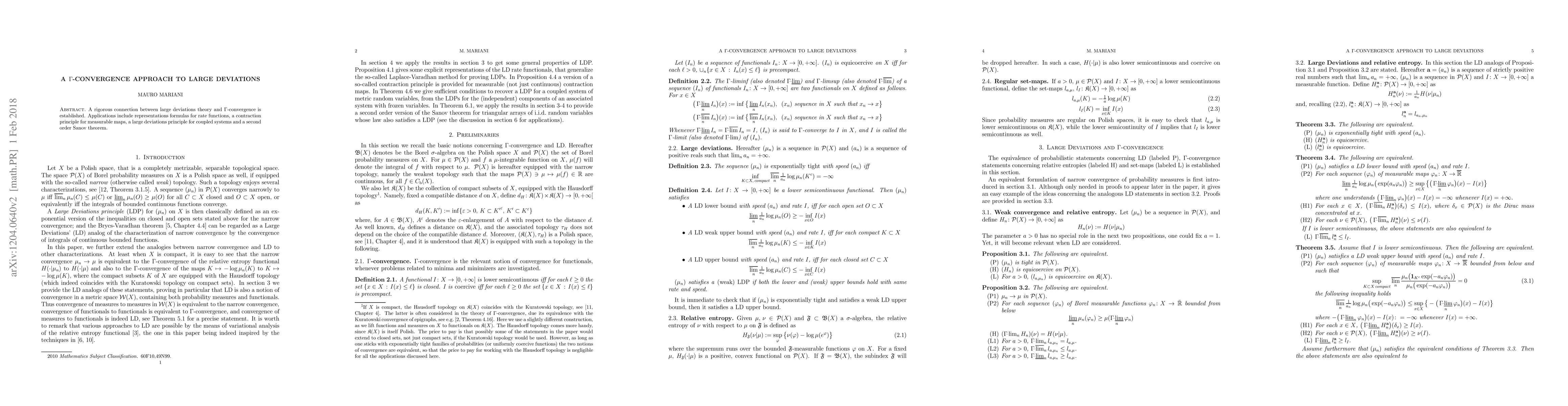 This paper establishes a rigorous link between large deviations theory and Gamma-convergence, providing representations for rate functions, a contraction principle for measurable maps, and a large deviations principle for coupled systems, along with a second order Sanov theorem.
