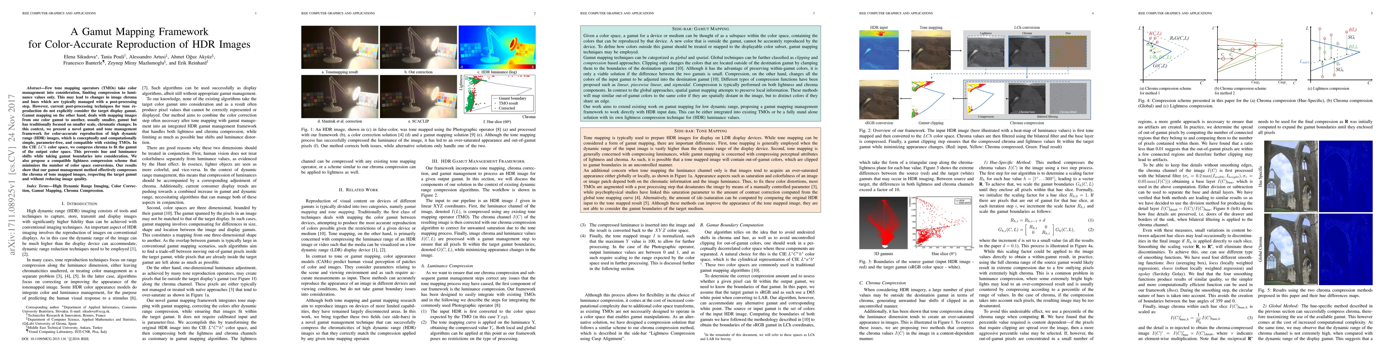 This paper introduces a novel gamut-mapping framework for accurate color reproduction in high dynamic range (HDR) images, addressing the limitations of existing tone mapping operators by considering the target display gamut and minimizing hue and luminance shifts. The proposed method compresses chroma in the CIE LCh color space to fit the output gamut, preserving image quality.