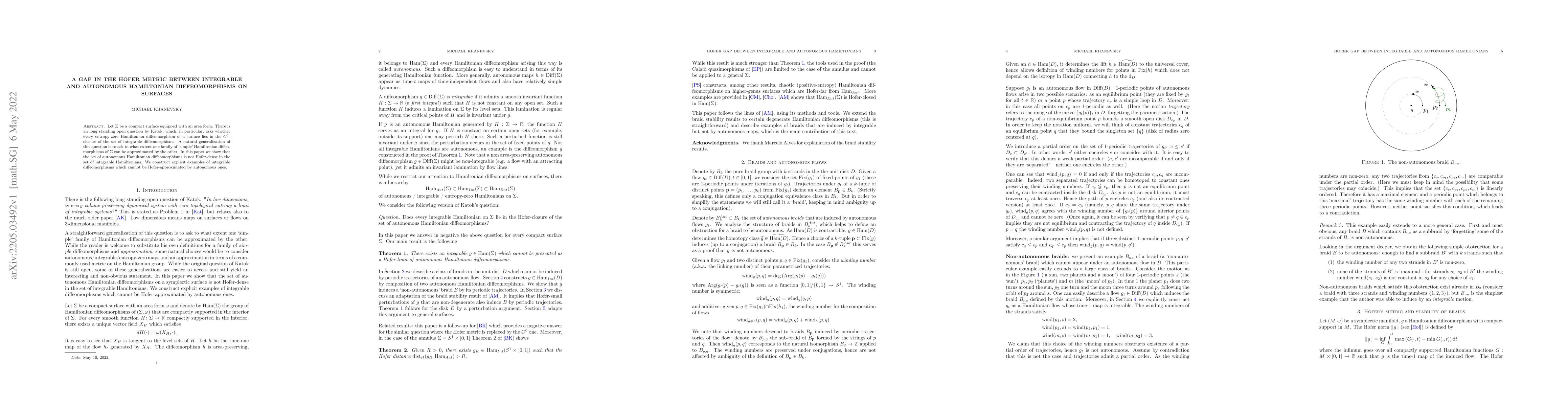 This paper demonstrates that autonomous Hamiltonian diffeomorphisms cannot approximate all integrable Hamiltonian diffeomorphisms in the Hofer metric, providing explicit examples of integrable diffeomorphisms that resist such approximation. This resolves a longstanding question regarding the relationship between these two families of diffeomorphisms on compact surfaces.