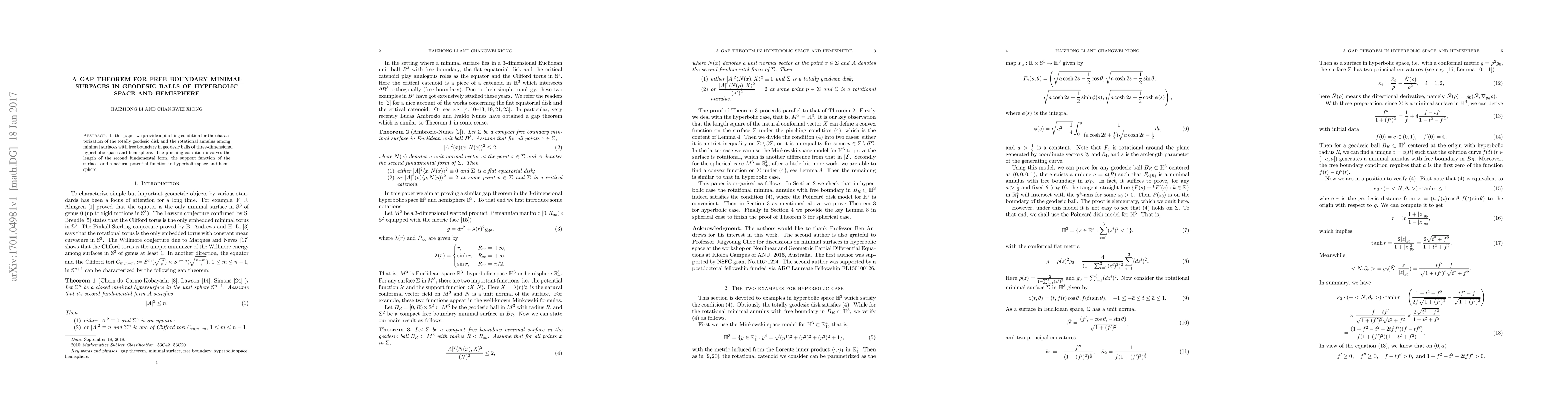 A new pinching condition is introduced to distinguish between specific types of minimal surfaces with free boundary in geodesic balls of hyperbolic space and hemisphere, shedding light on their unique properties.
