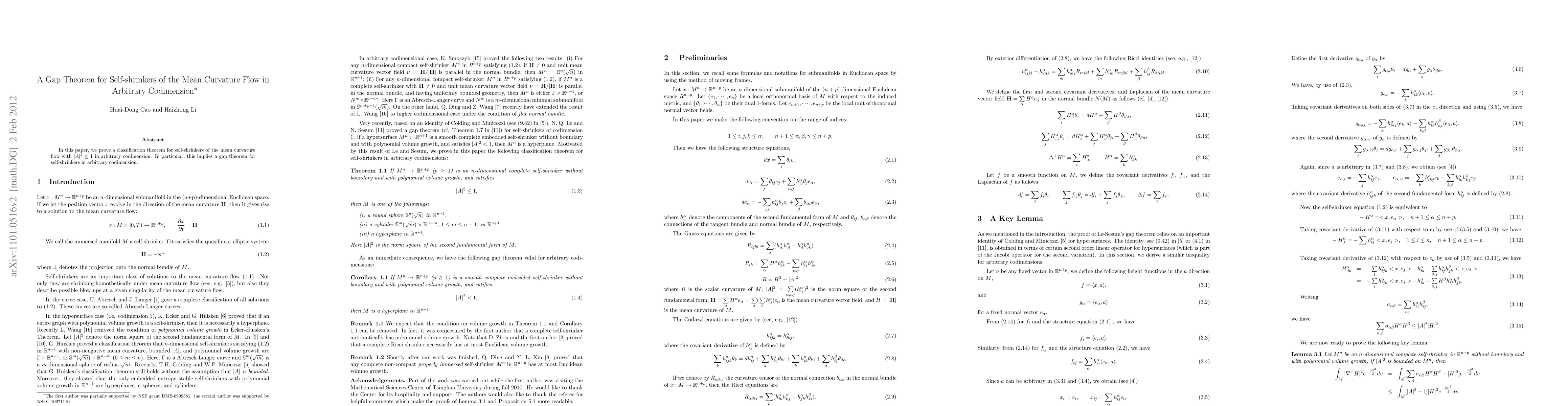 This paper classifies self-shrinkers of the mean curvature flow with $|A|^2\le 1$ in any codimension, establishing a gap theorem that excludes certain types of self-shrinkers in arbitrary codimension.