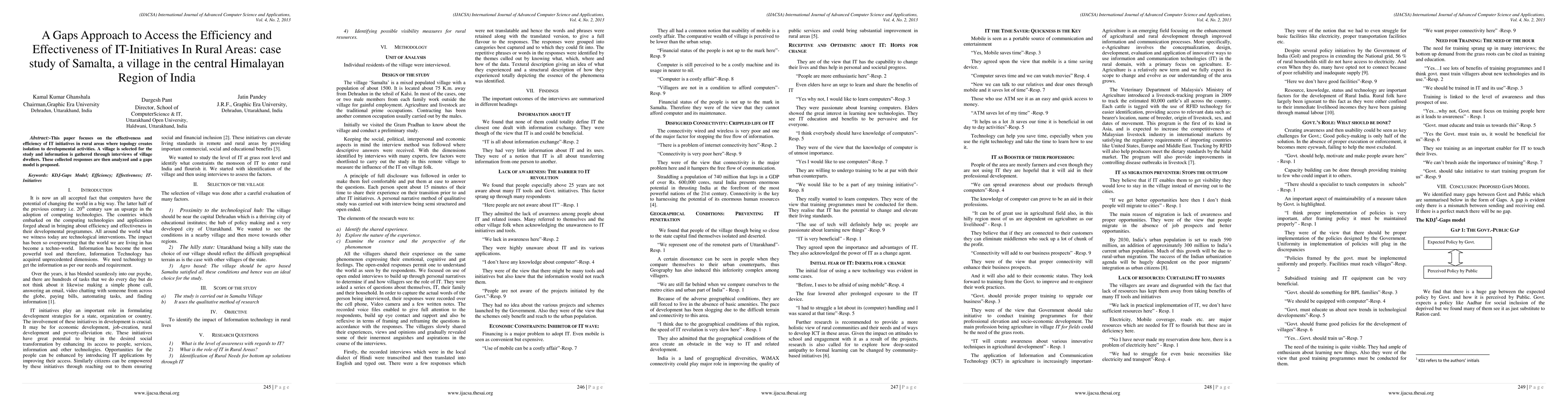 This paper focuses on the effectiveness and efficiency of IT initiatives in rural areas where topology creates isolation to developmental activities. A village is selected for the study and information is gathered through interviews of village dwellers. These collected responses are then analyzed and a gaps model is proposed.