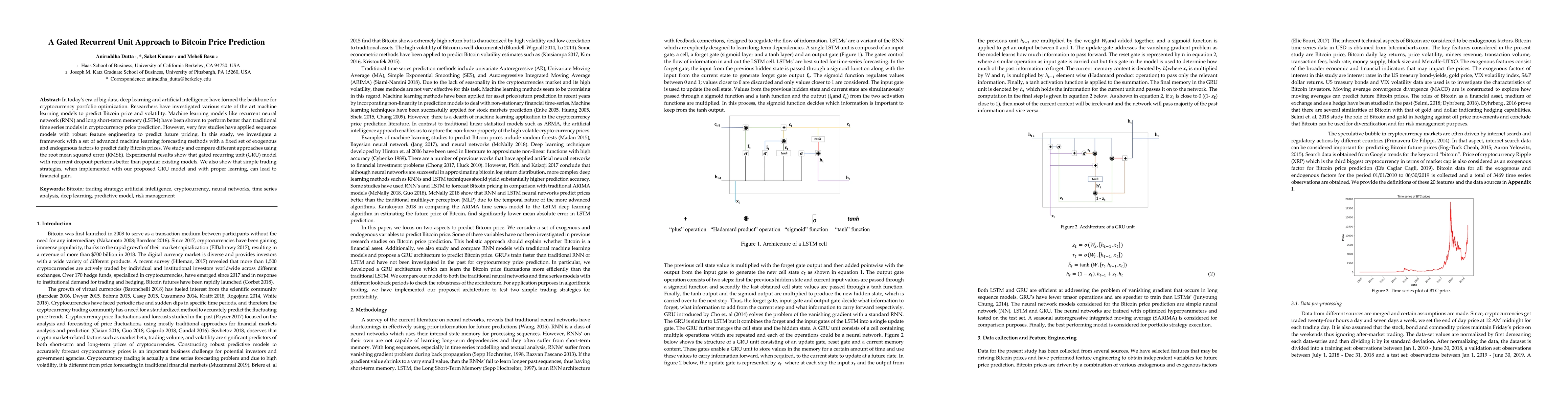 This study explores the use of Gated Recurrent Units (GRU) for predicting daily Bitcoin prices, comparing it against traditional RNN and LSTM models. Results indicate that the GRU model with recurrent dropout outperforms existing models, and simple trading strategies based on the GRU model can yield financial gains.