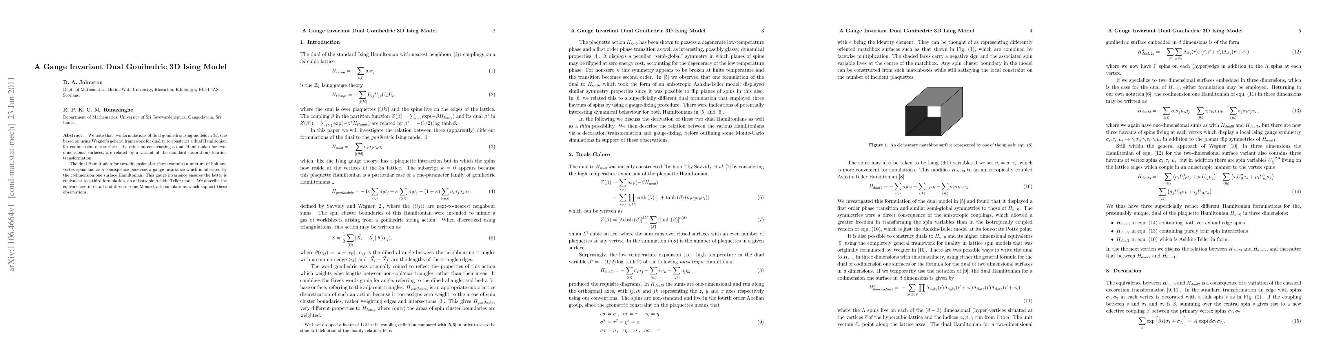 This paper explores dual formulations of a gauge invariant 3D Ising model, revealing that a dual Hamiltonian for two-dimensional surfaces exhibits gauge invariance, which is inherited by the codimension one surface Hamiltonian, leading to equivalence with an anisotropic Ashkin-Teller model. Monte-Carlo simulations support these theoretical findings.
