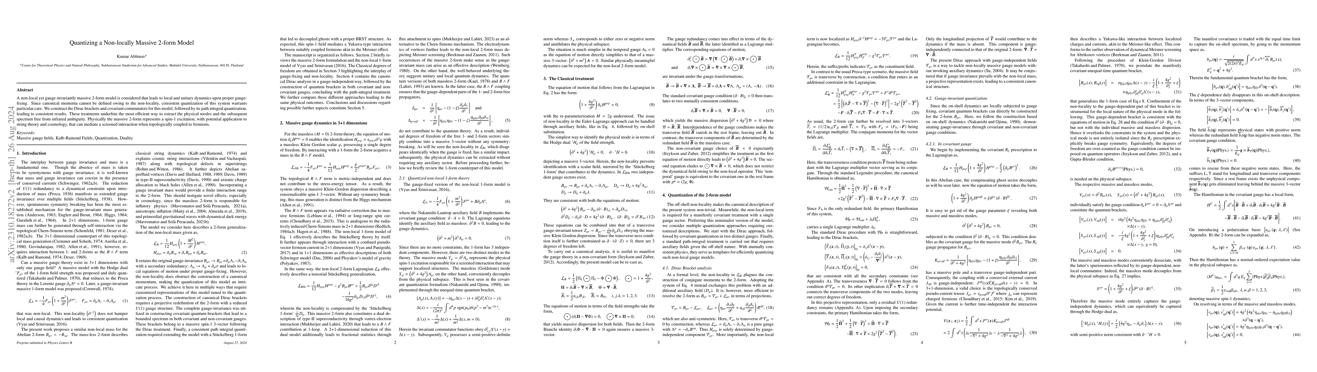 This paper explores a gauge-invariant massive Abelian 2-form model in 3+1 dimensions with a non-local mass term, demonstrating local classical equations and three massive degrees of freedom. It successfully quantizes the model using both covariant and non-covariant gauges, revealing the dissociation of a spurious massless mode and decoupling of ghosts.
