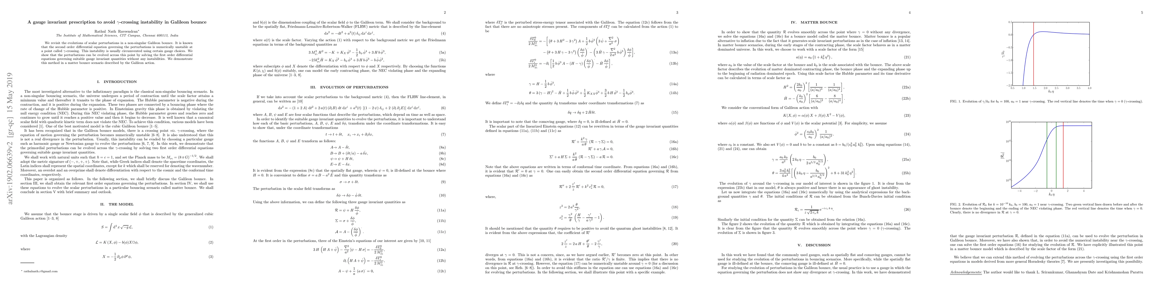 Researchers develop a new method to evolve Galileon bounce simulations without numerical instability at the gamma-crossing point, using first-order differential equations that preserve gauge invariance.