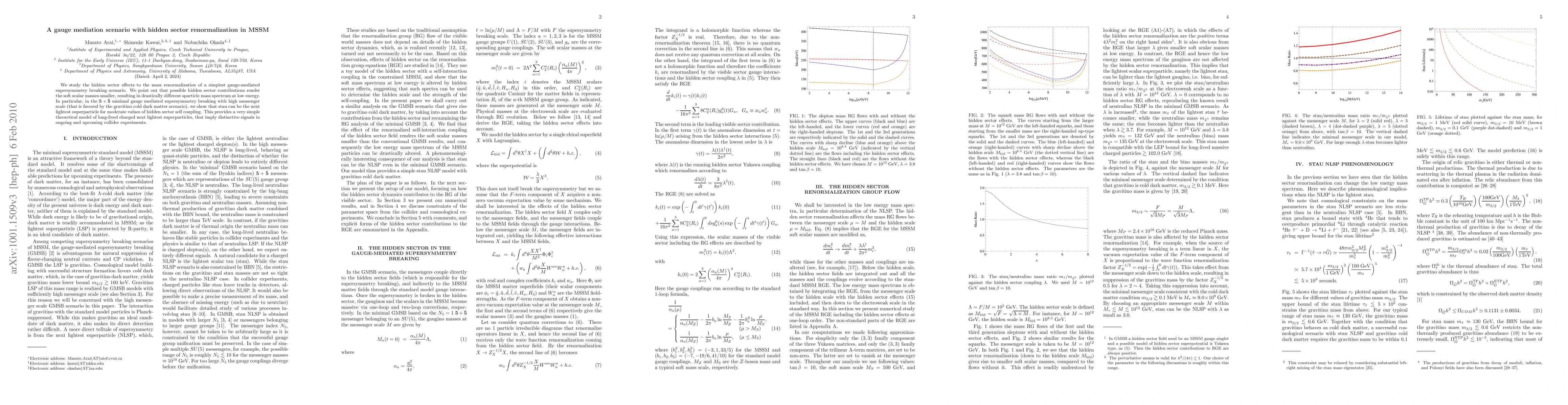 This paper investigates hidden sector contributions to mass renormalization in a minimal gauge-mediated supersymmetry breaking scenario, showing that these effects can significantly reduce soft scalar masses and alter the sparticle mass spectrum. It finds that under certain conditions, the stau can become the next lightest superparticle, offering a simple theoretical model for long-lived charged superparticles with distinct collider signatures.