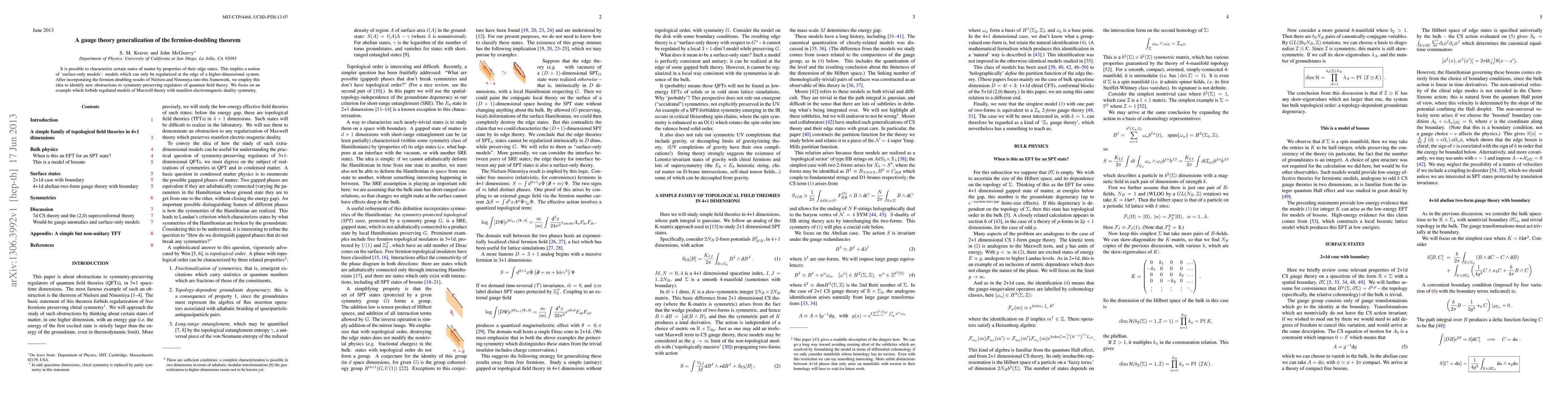 It is possible to characterize certain states of matter by properties of their edge states. This implies a notion of `surface-only models': models which can only be regularized at the edge of a higher-dimensional system. After incorporating the fermion-doubling results of Nielsen and Ninomiya into this framework, we employ this idea to identify new obstructions to symmetry-preserving regulators of quantum field theory. We focus on an example which forbids regulated models of Maxwell theory with manifest electromagnetic duality symmetry.