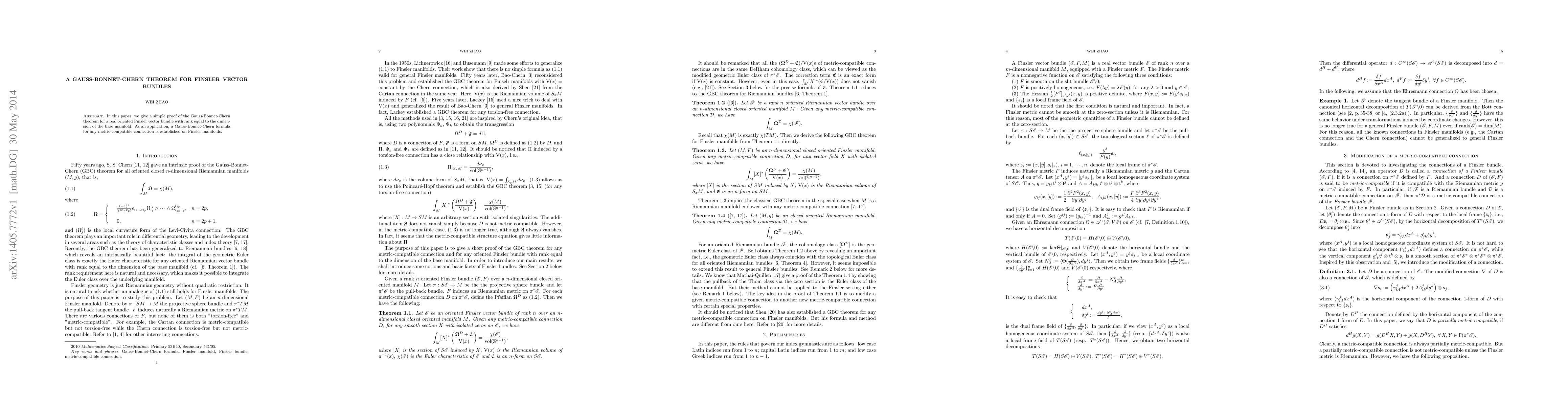 This paper presents a straightforward proof of the Gauss-Bonnet-Chern theorem for real oriented Finsler vector bundles, and applies it to derive a Gauss-Bonnet-Chern formula for metric-compatible connections on Finsler manifolds.